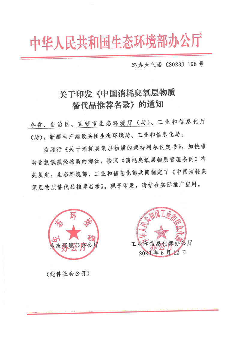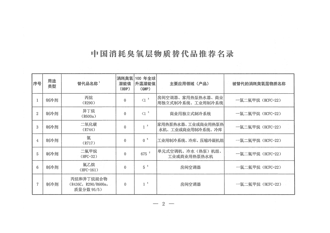 关于印发《中国消耗臭氧层物质替代品推荐名录》的通知