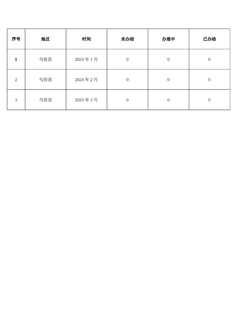 克州生态环境局乌恰县分局2024年第一季度信访投诉受理