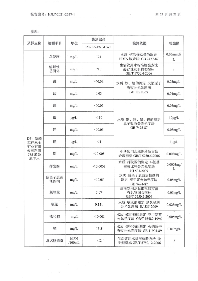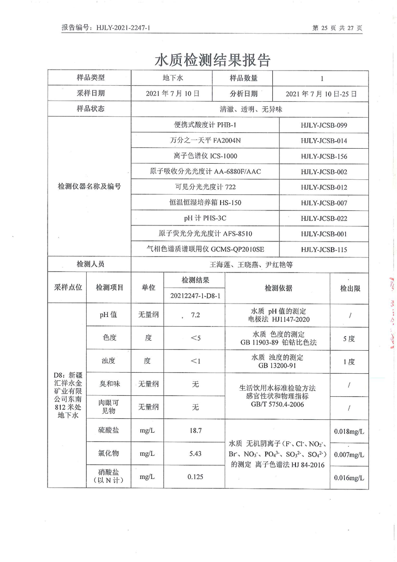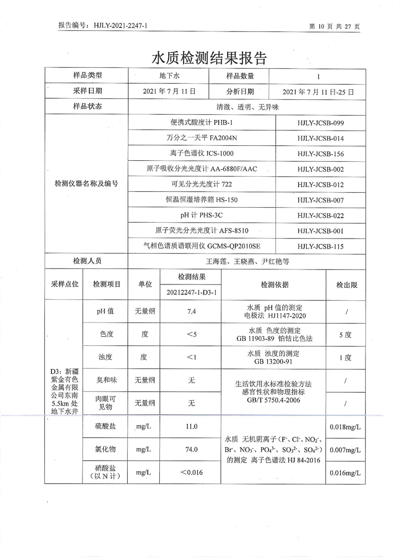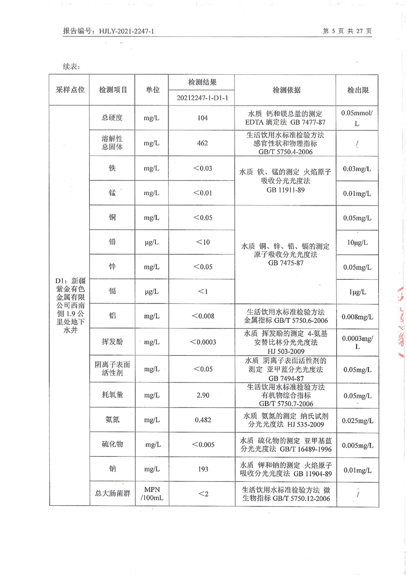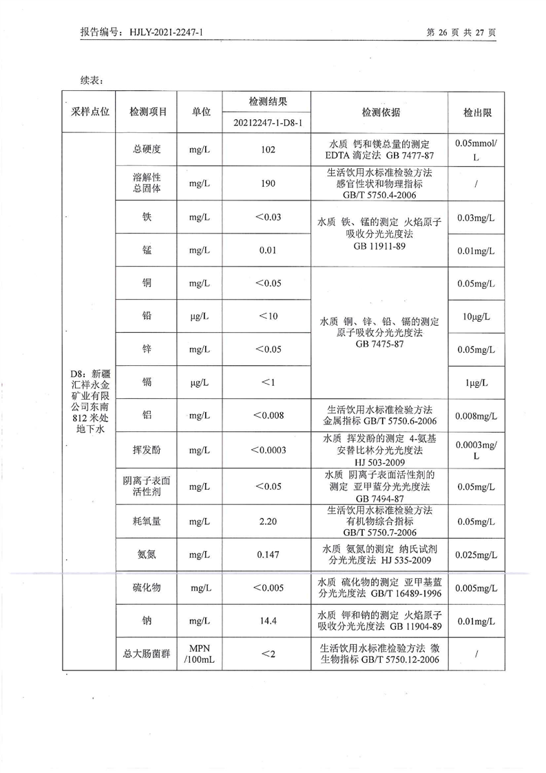 乌恰县紫金有色、汇祥永金有限公司地下水监测报告