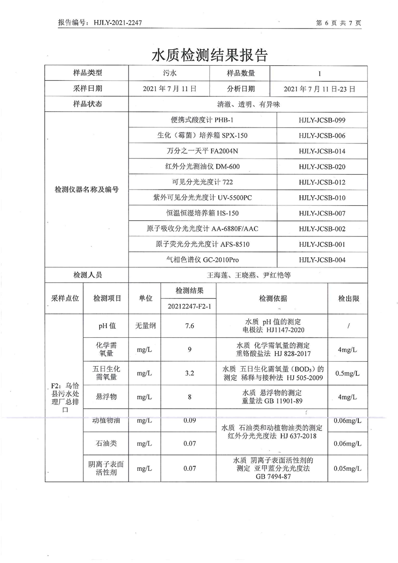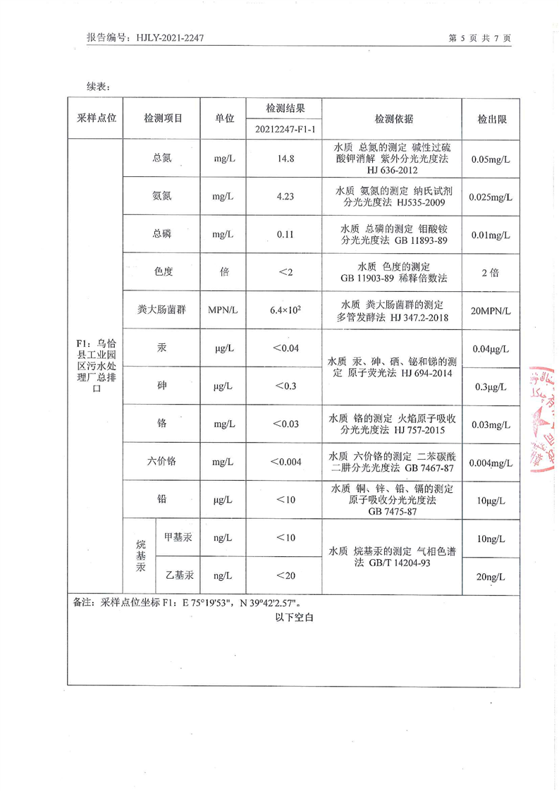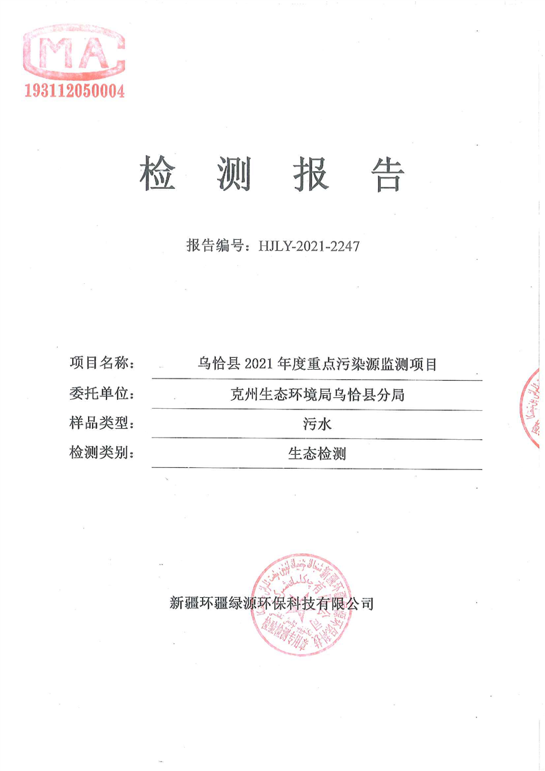 乌恰县2021年度重点污染源三季度乌恰县污水处理厂、工业园区污水处理厂监测报告