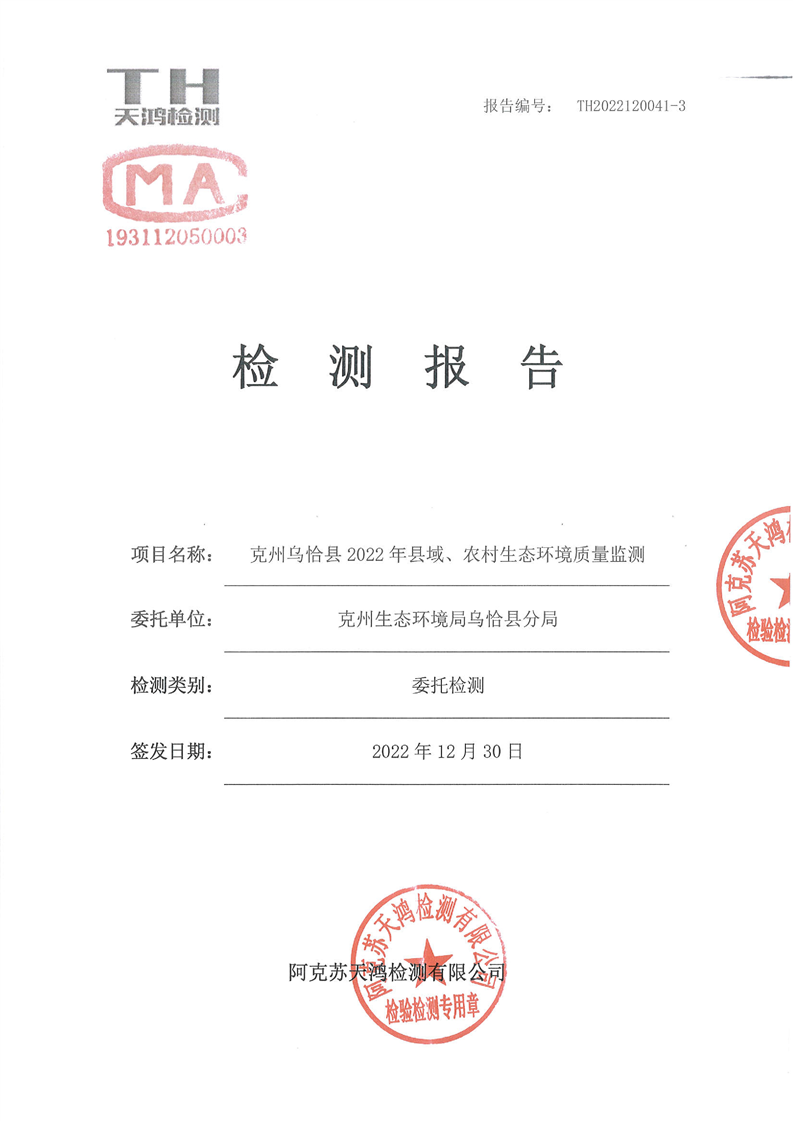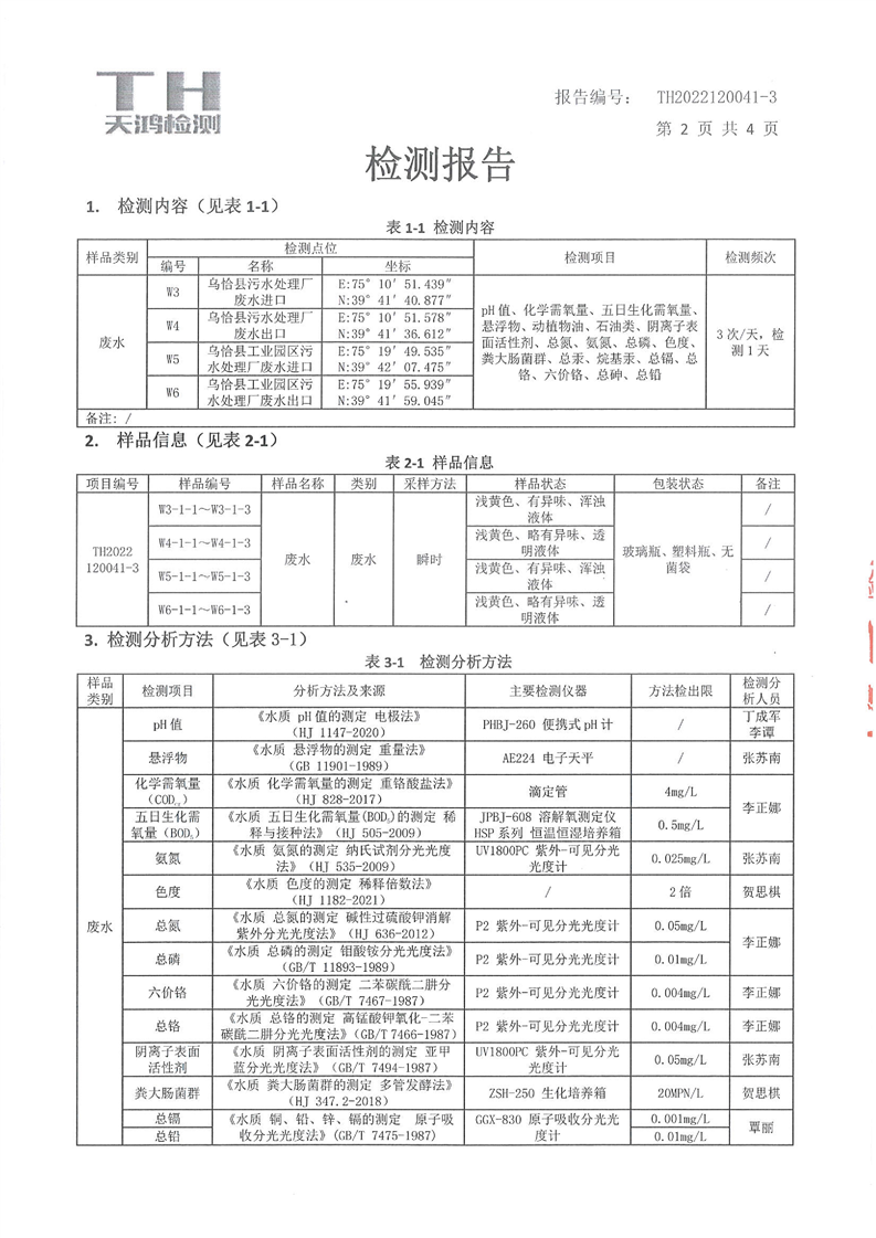 乌恰县城和工业园区污水处理厂废水检测报告(第四季度)