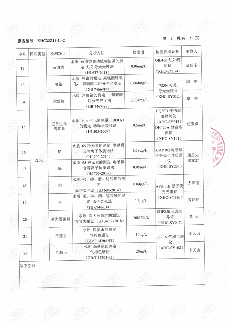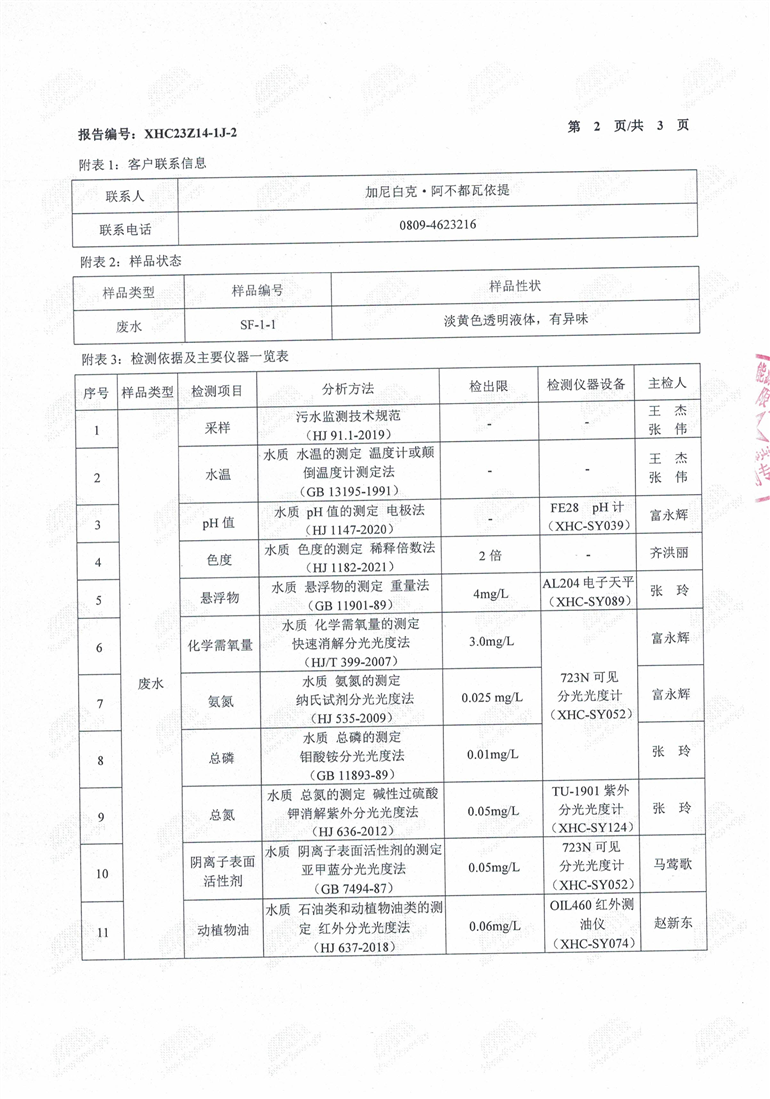 乌恰县工业园区污水处理厂第一季度污水检测报告