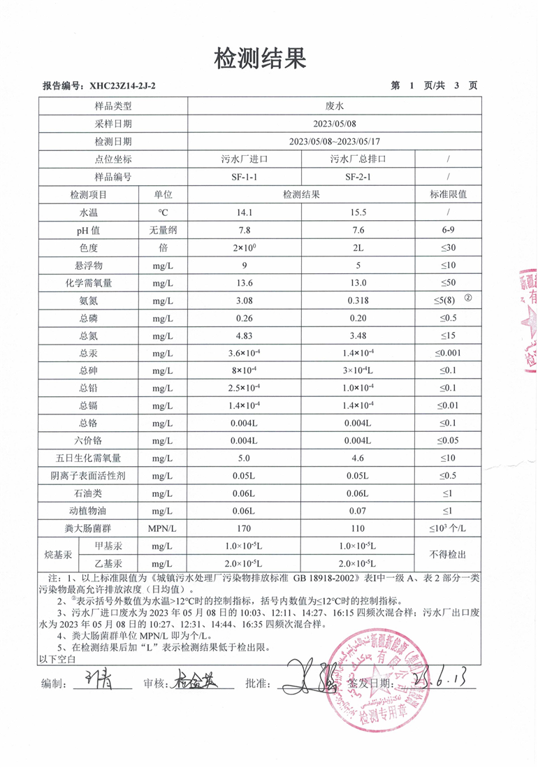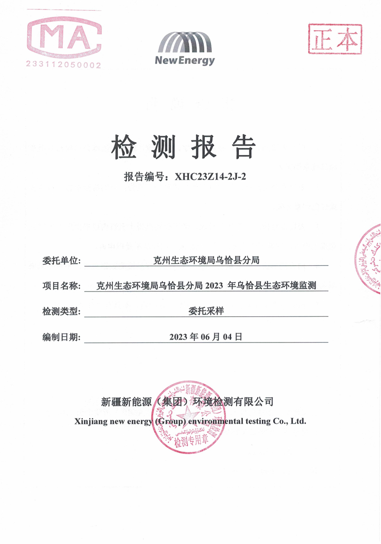 第二季度乌恰县工业园区污水处理厂污水检测报告