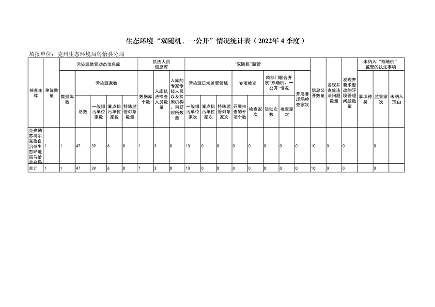 生态环境“双随机、一公开”情况统计表(2022年 4 季度)