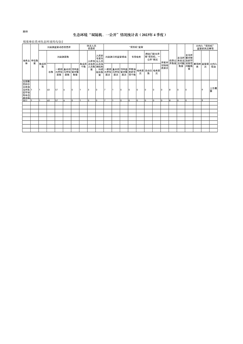 第四季度“双随机、一公开”情况统计表