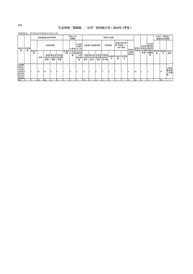 2024年第二季度生态环境“双随机、一公开”情况统计表