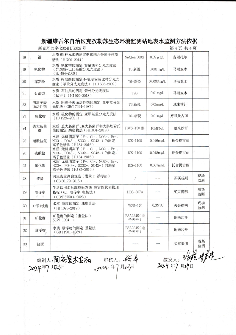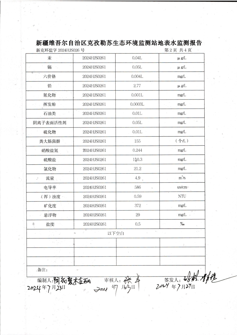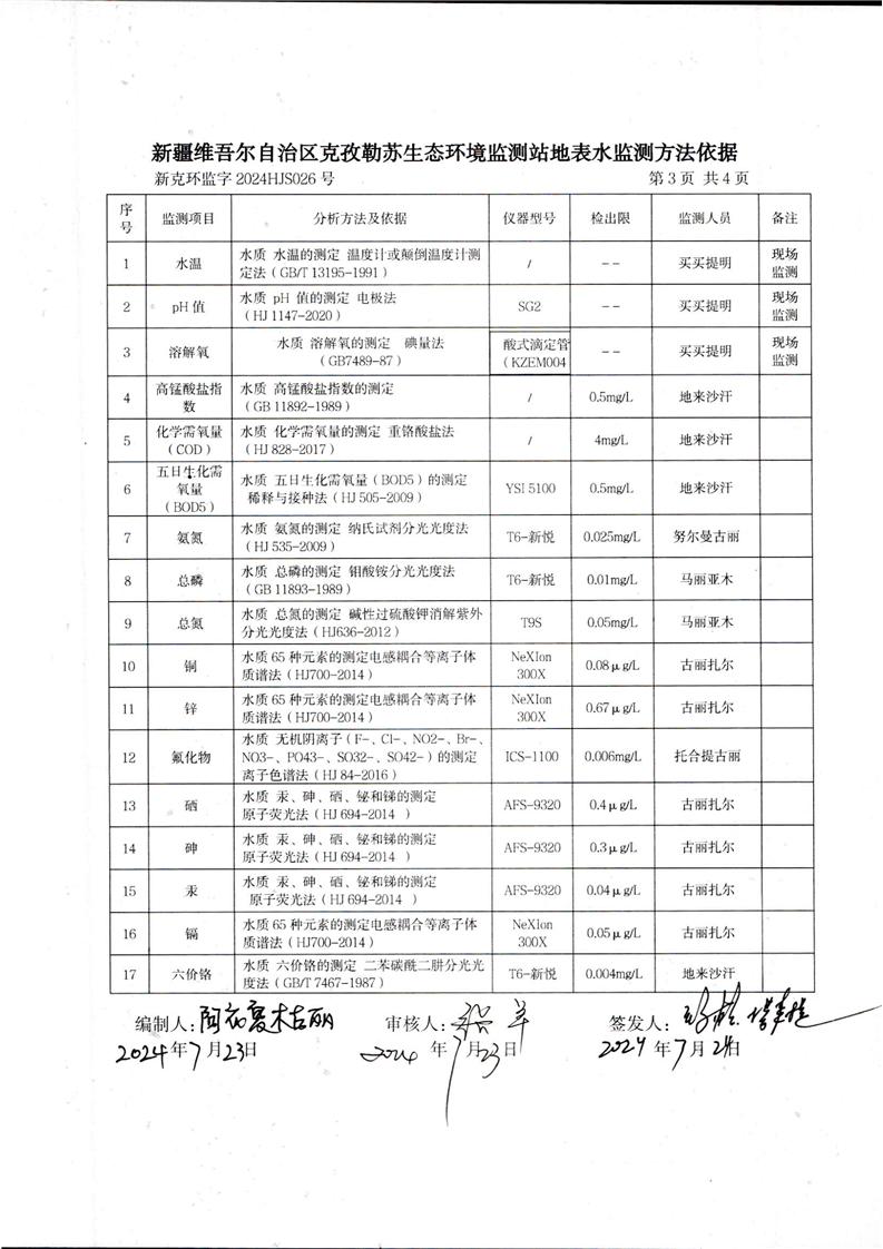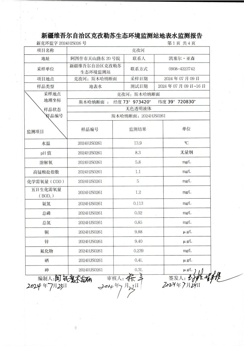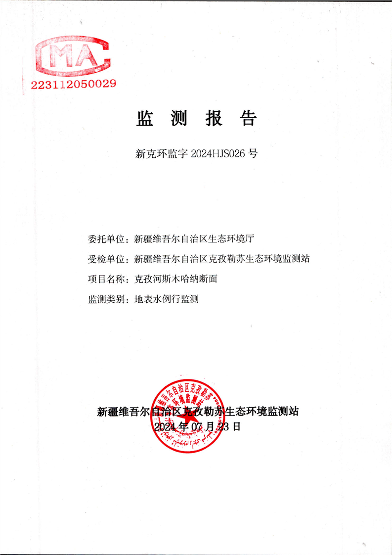克孜河斯木哈纳断面监测报告(7月)