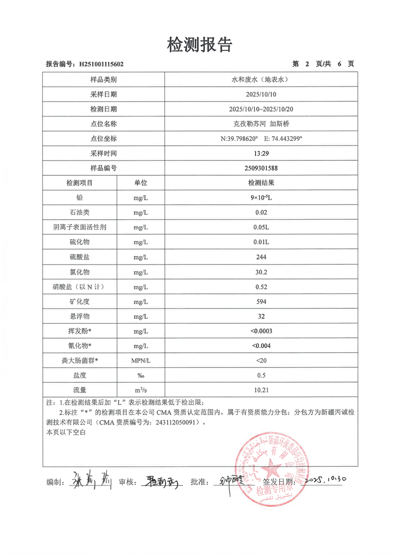 克孜勒苏河加斯桥10月地表检测报告