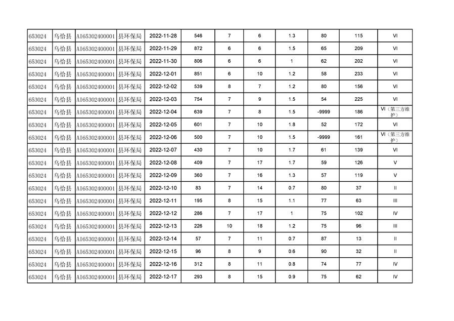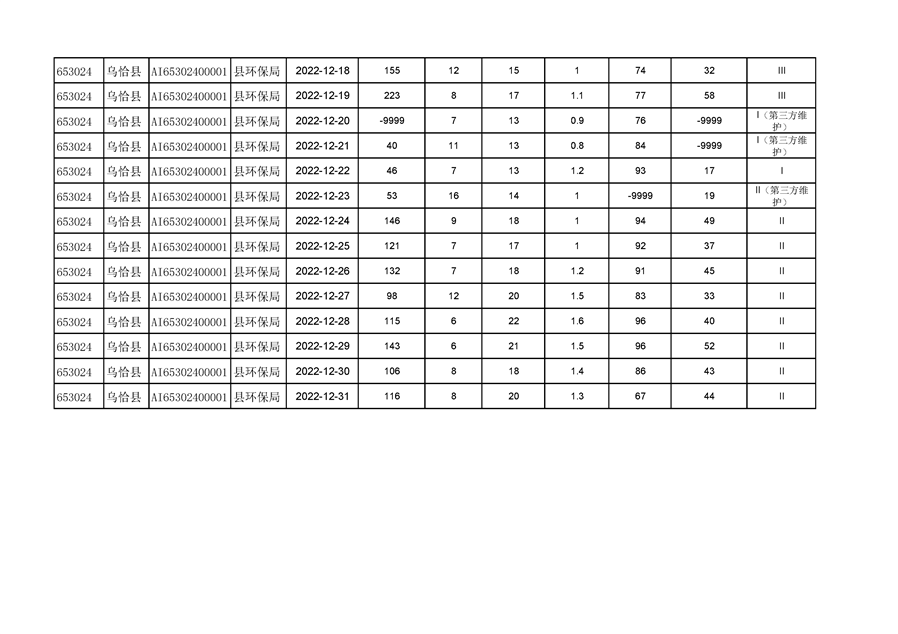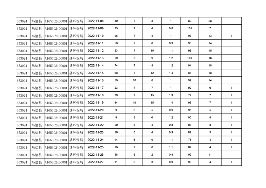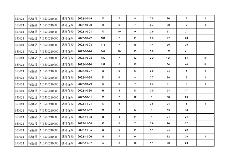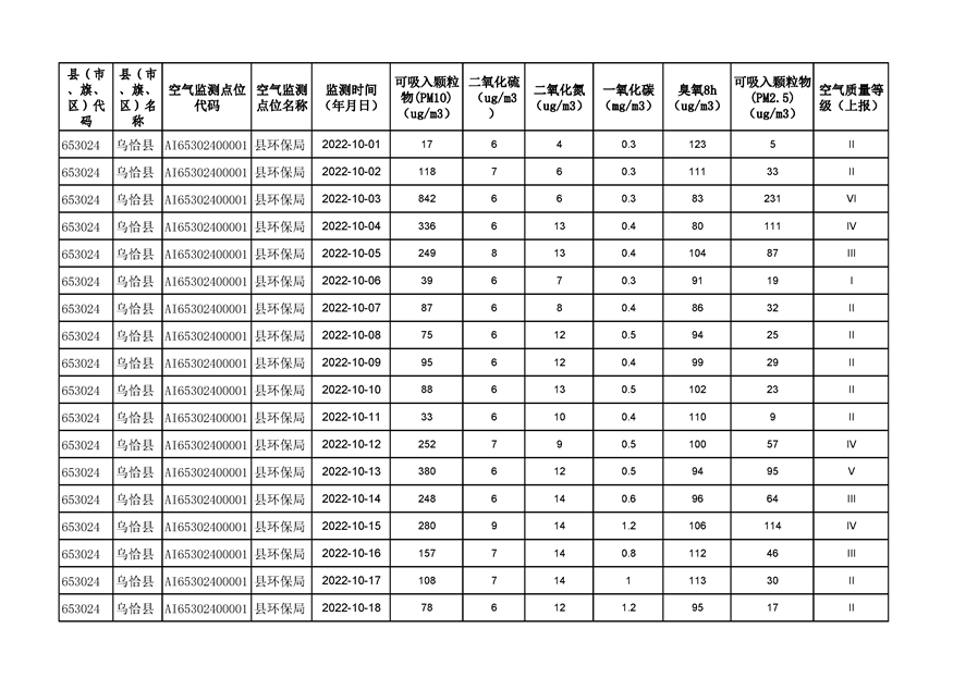 乌恰县 2022年第四季度国家生态功能区空气质量监测数据填报表(县域考核)