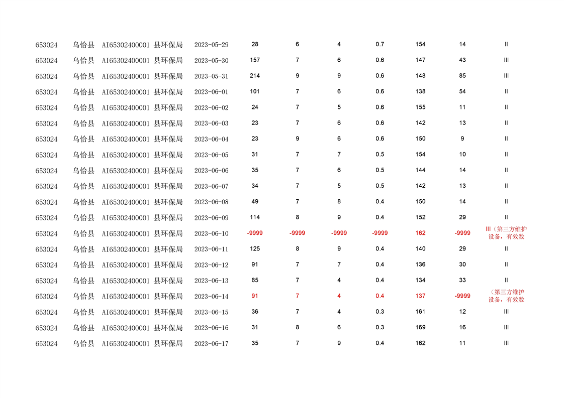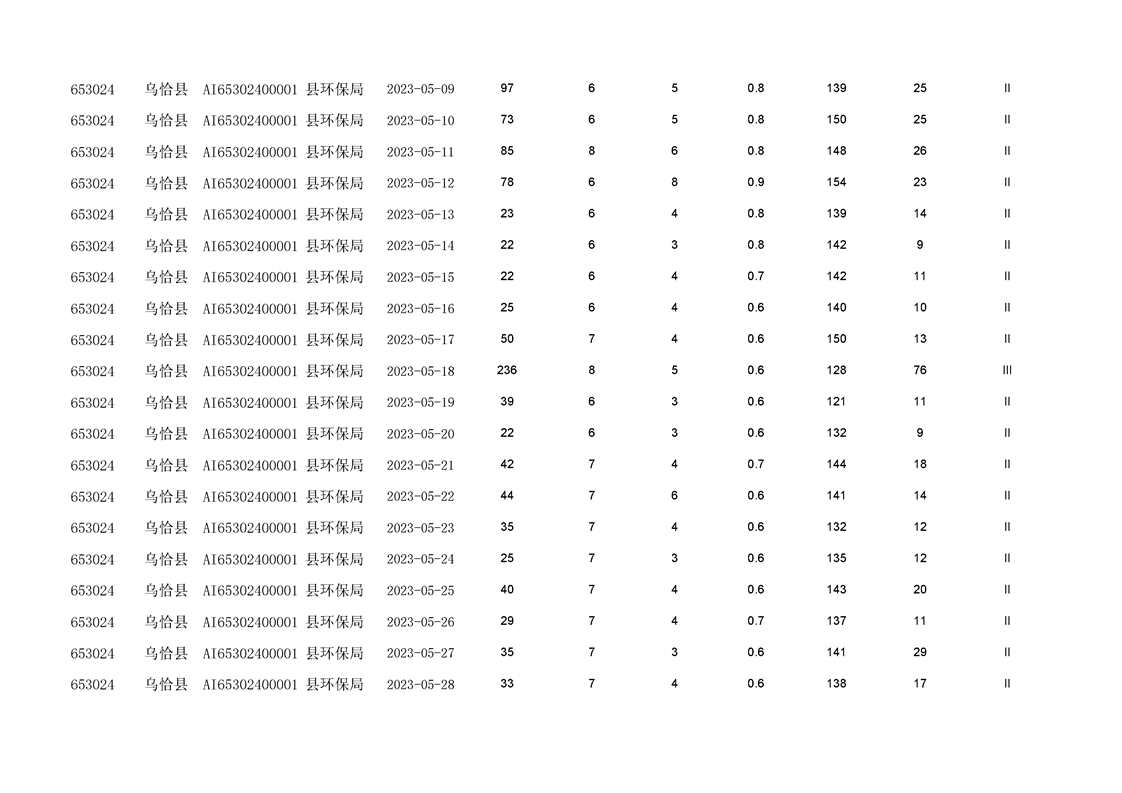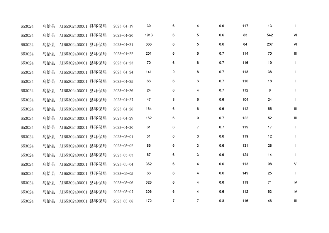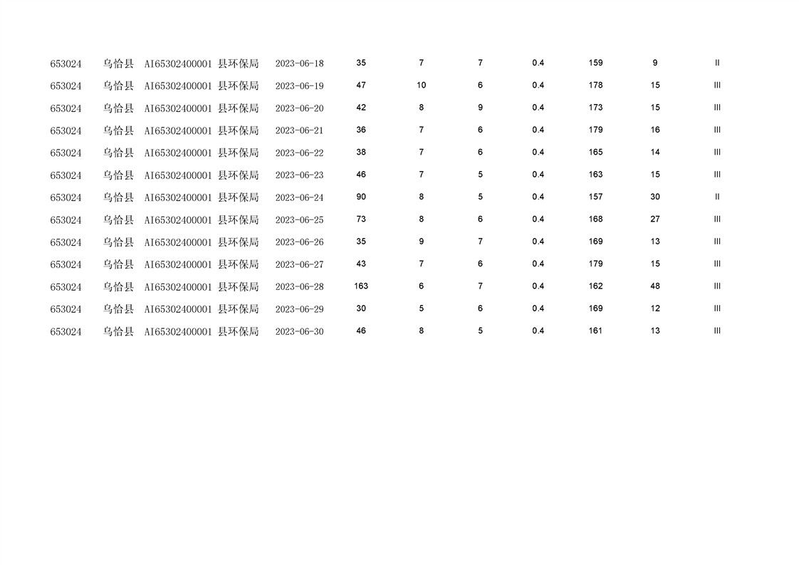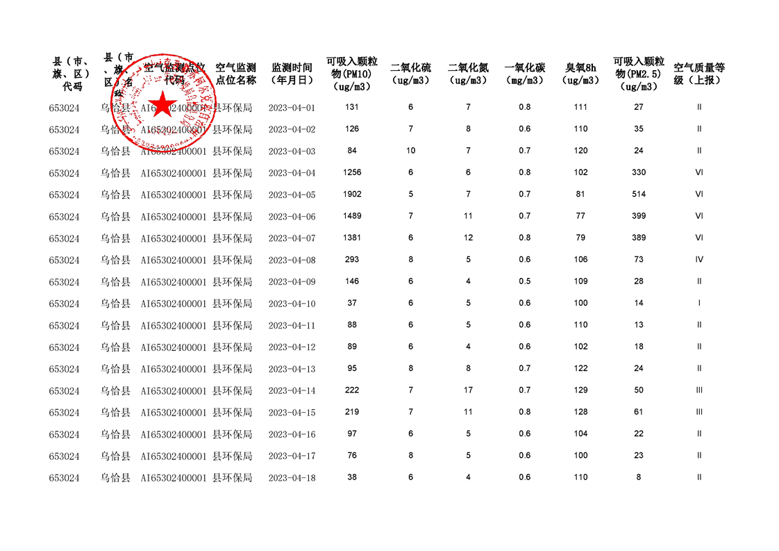 乌恰县2023年第二季度国家生态功能区空气质量监测数据填报表
