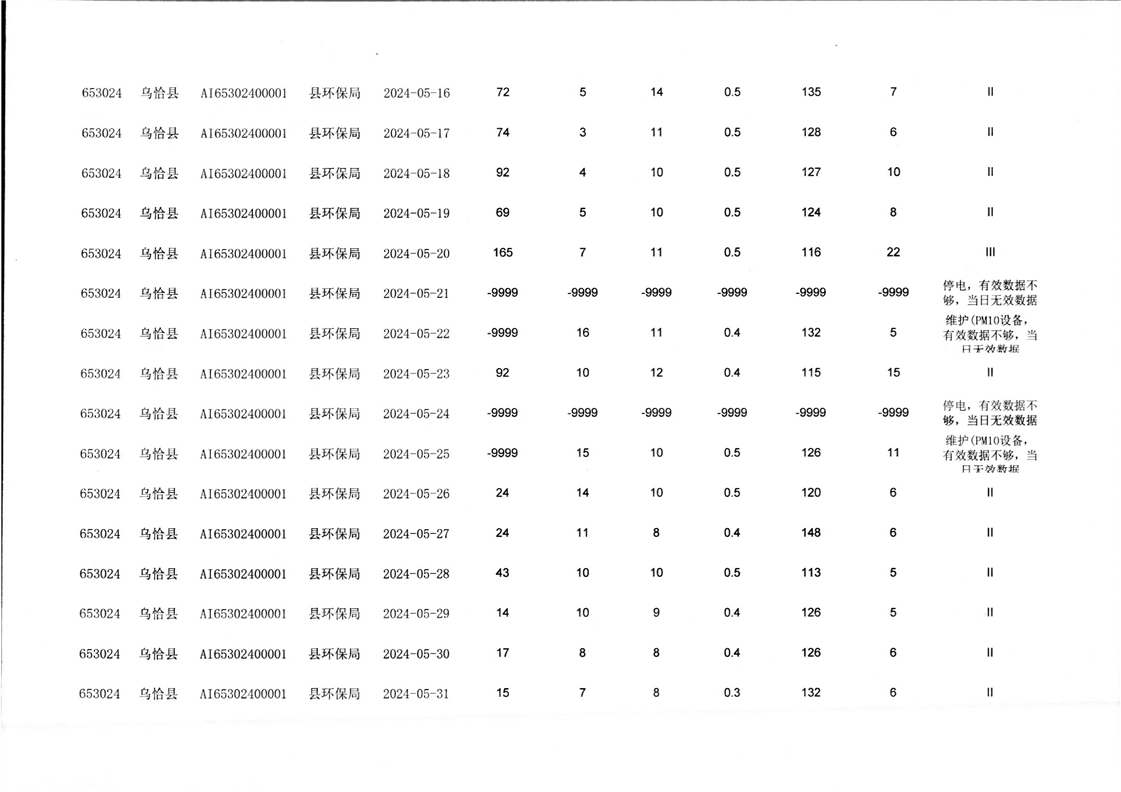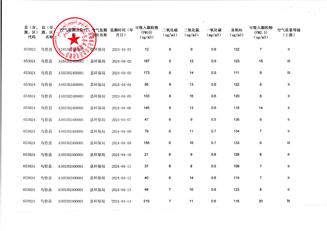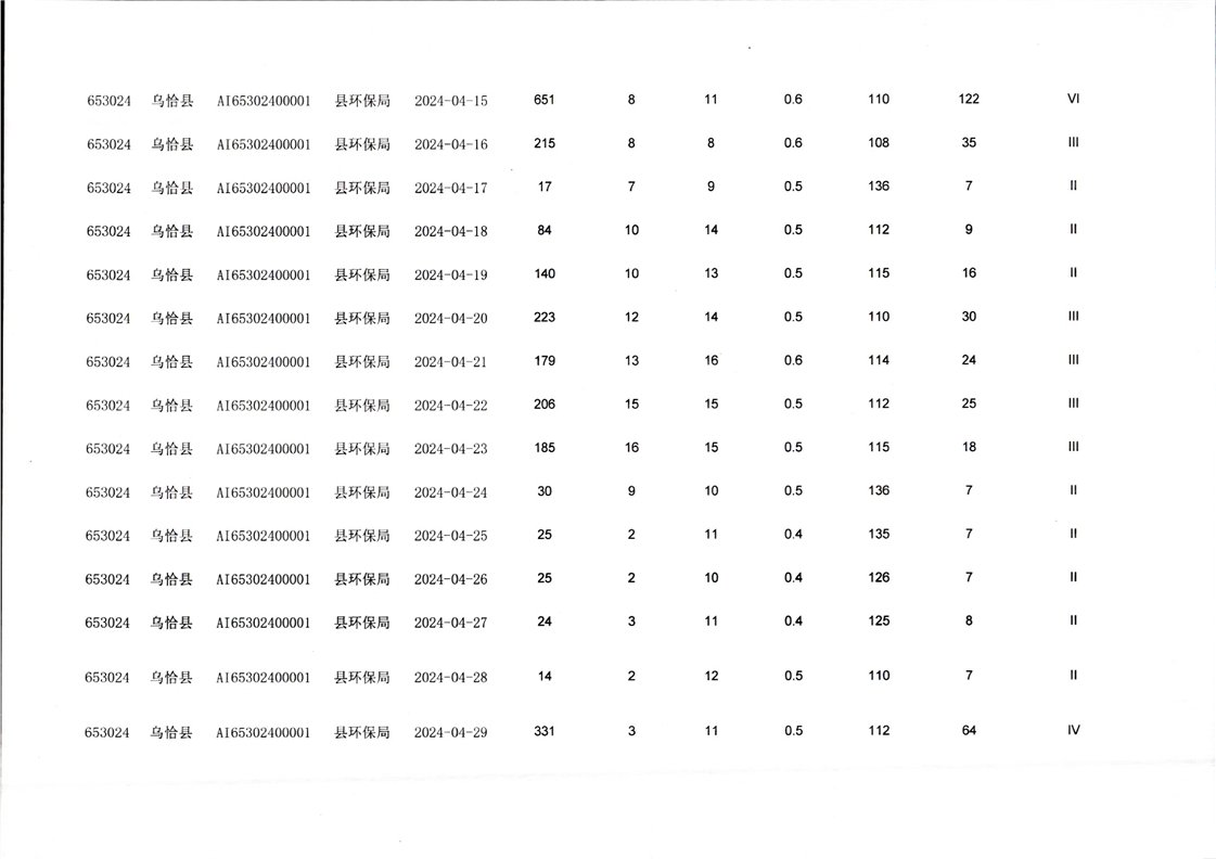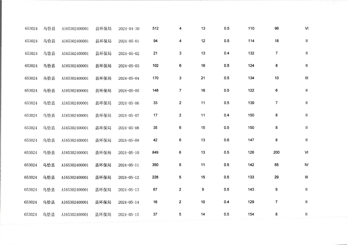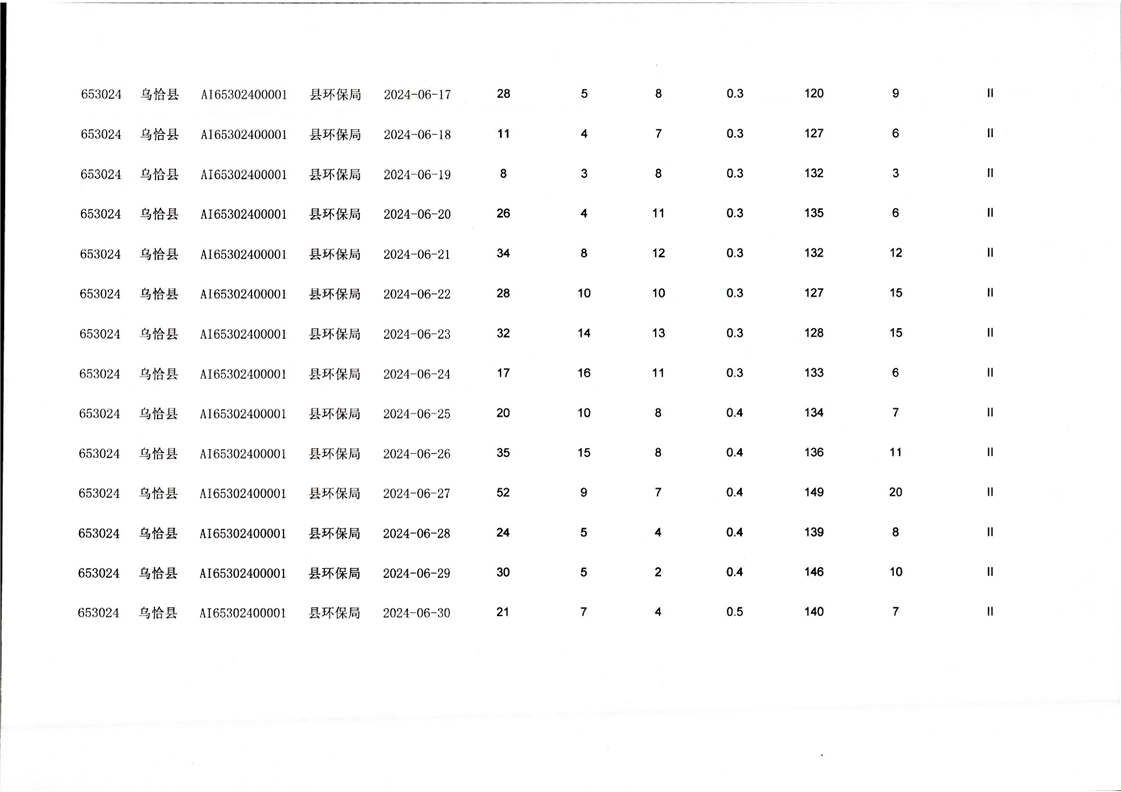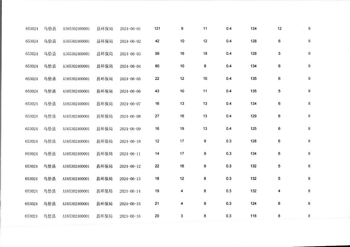 乌恰县国家生态功能区空气质量监测数据填报表(2024年第二季度)