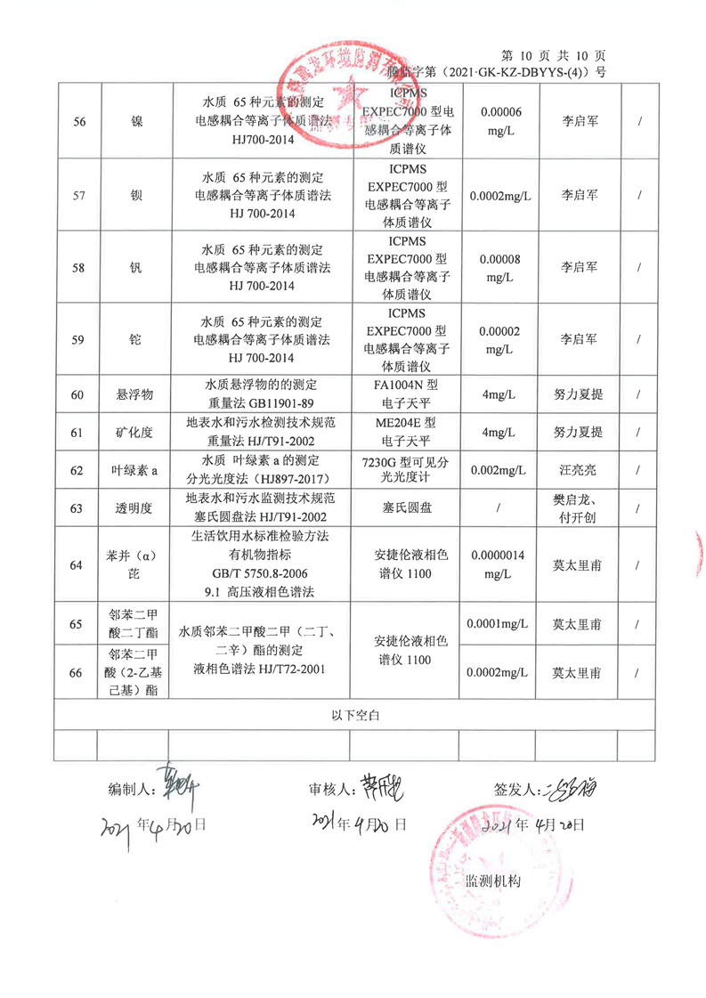 乌恰县城镇集中式生活饮用水水源地水质监测(开普太希水库第二季度)