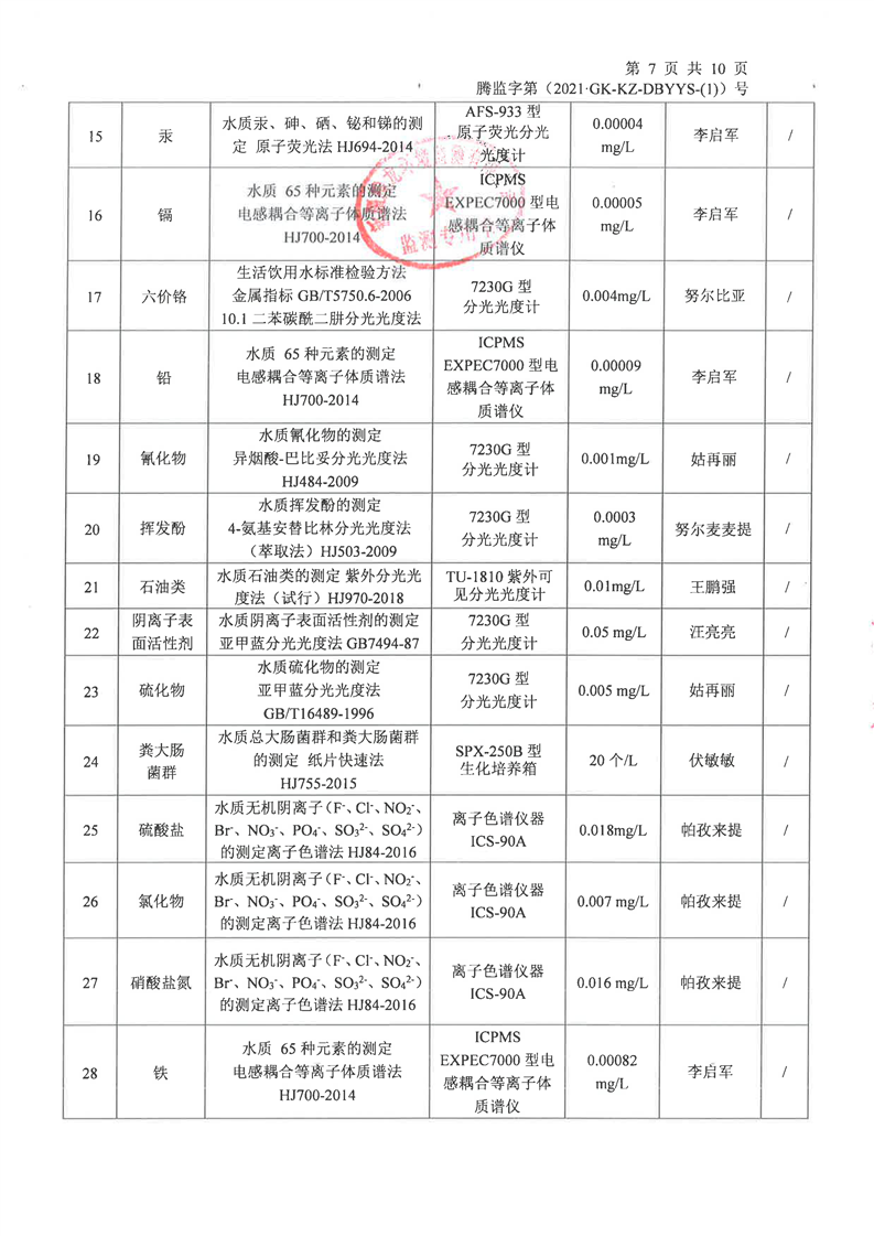 乌恰县城镇集中式生活饮用水水源地水质监测(开普太希水库第一季度)