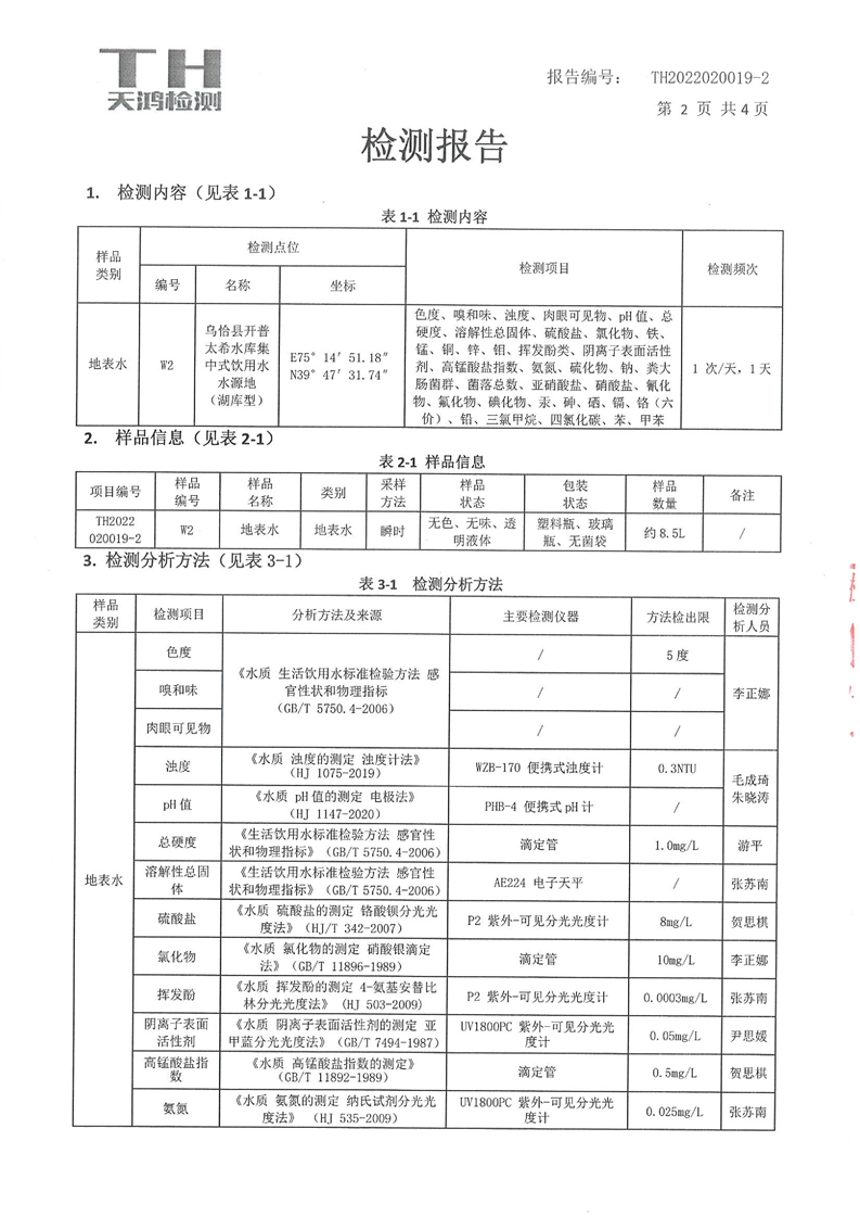乌恰县开普太希水库集中式饮用水水源地检测报告(第一季度)