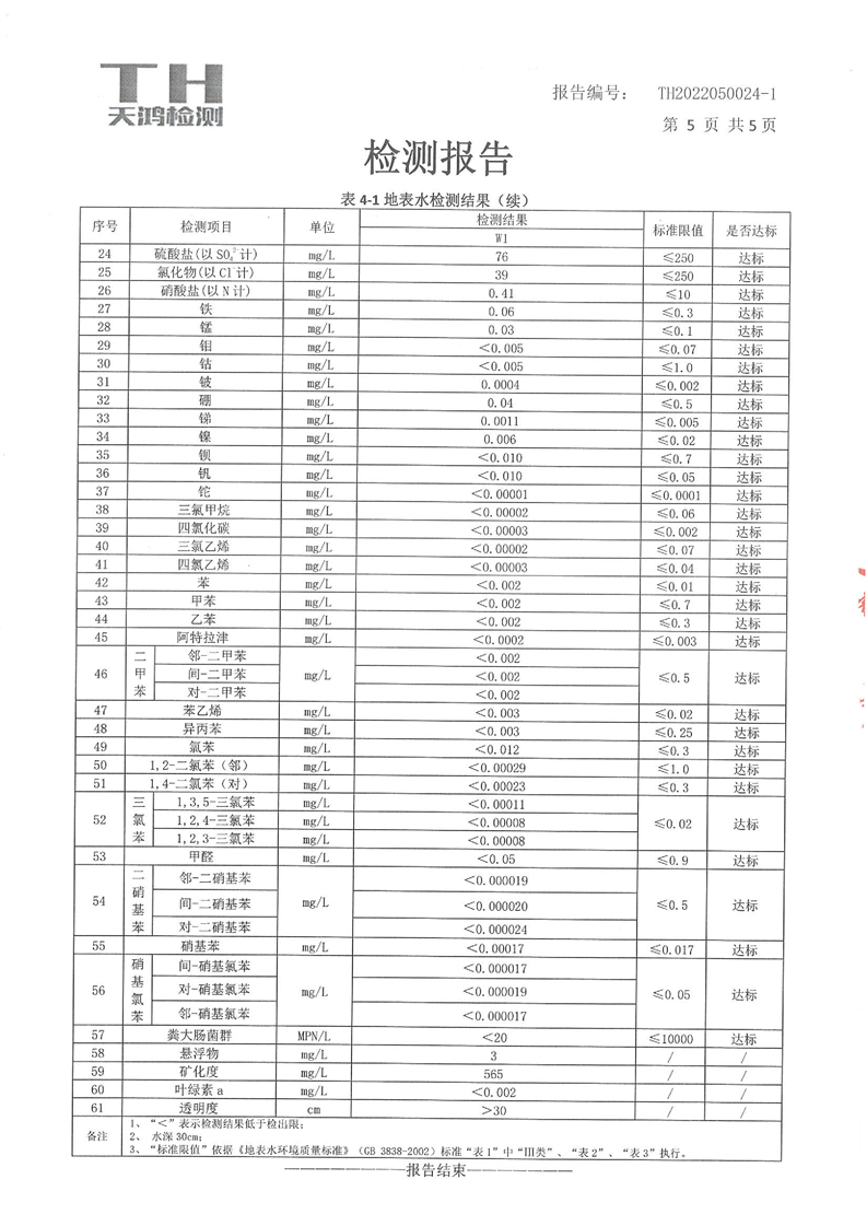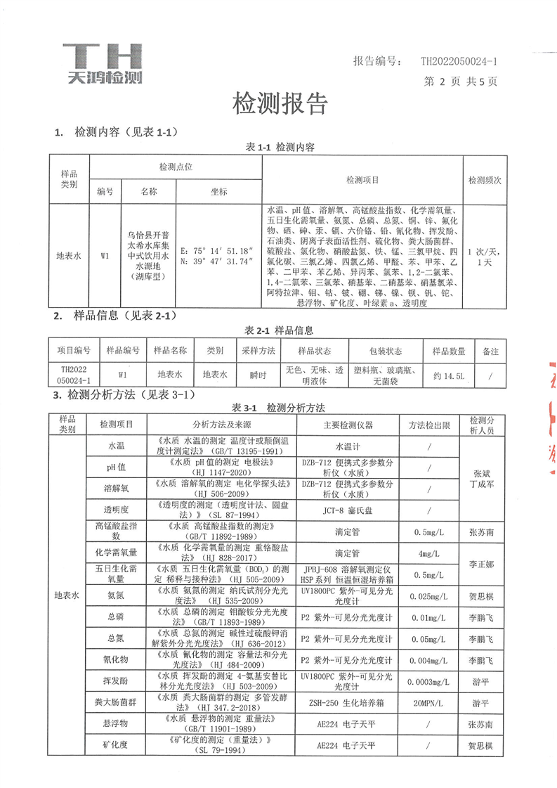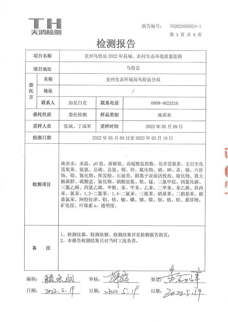 乌恰县开普太希水库集中式饮用水地(第二季度检测报告)
