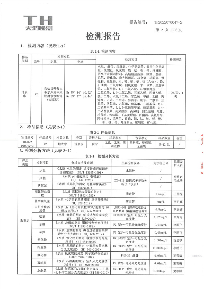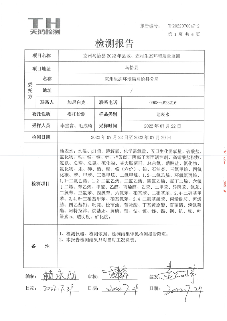 乌恰县开普太希水库集中式饮用水地第三季度检测报告