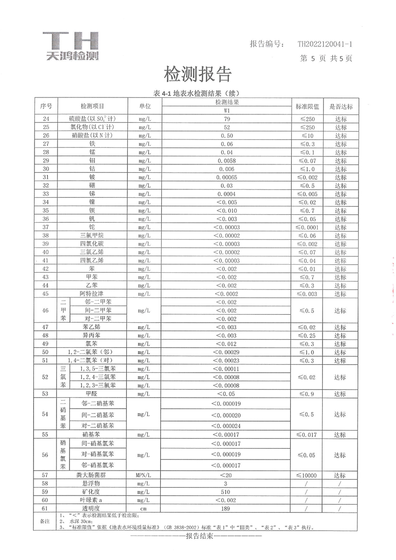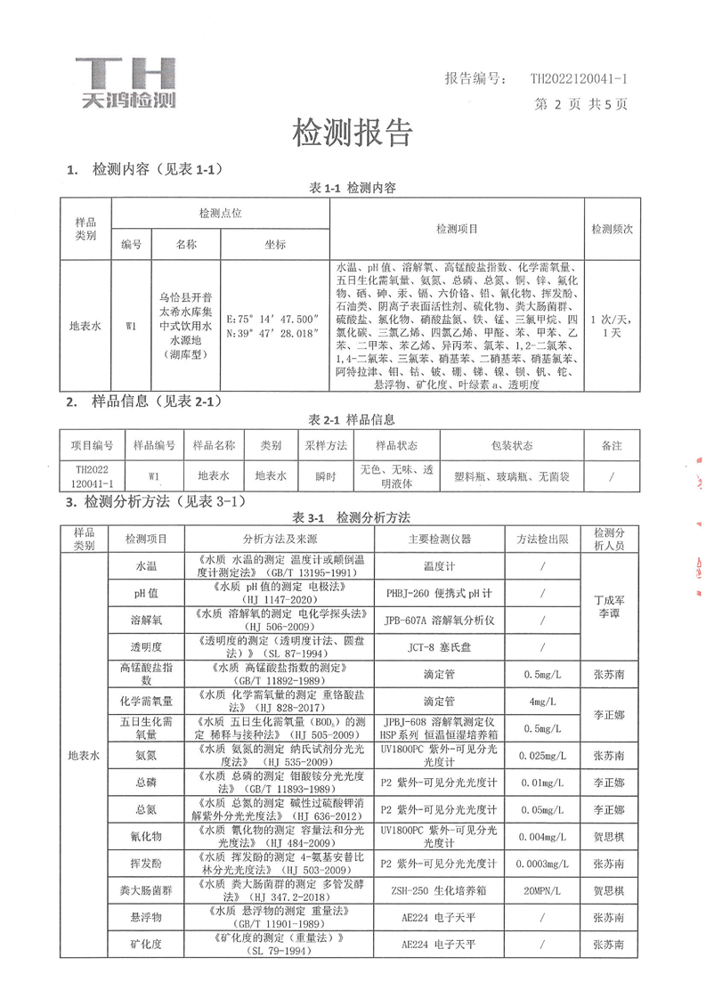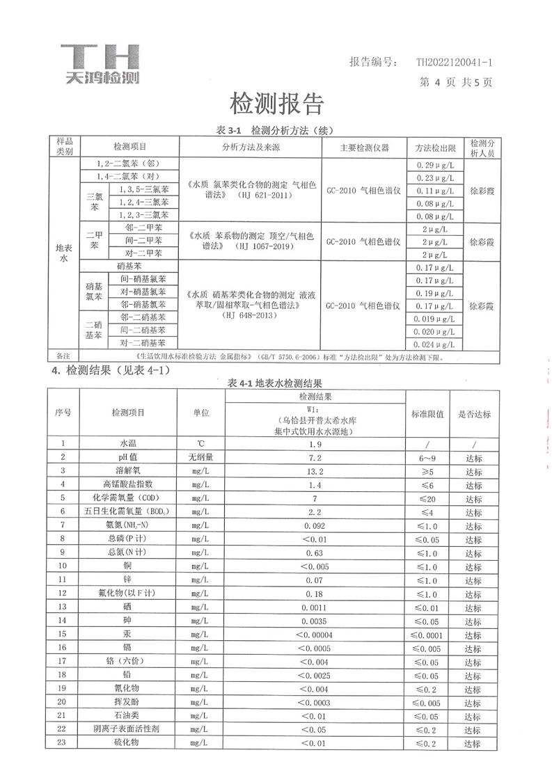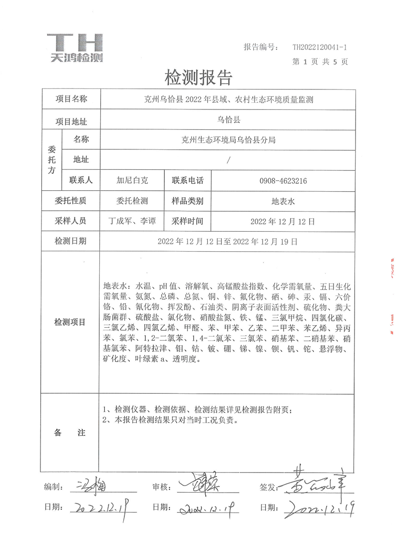 乌恰县开普太希水库集中式饮用水地(第四季度检测报告)