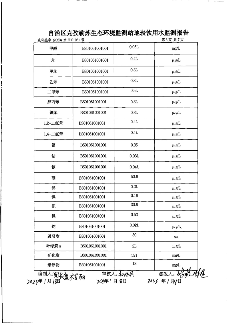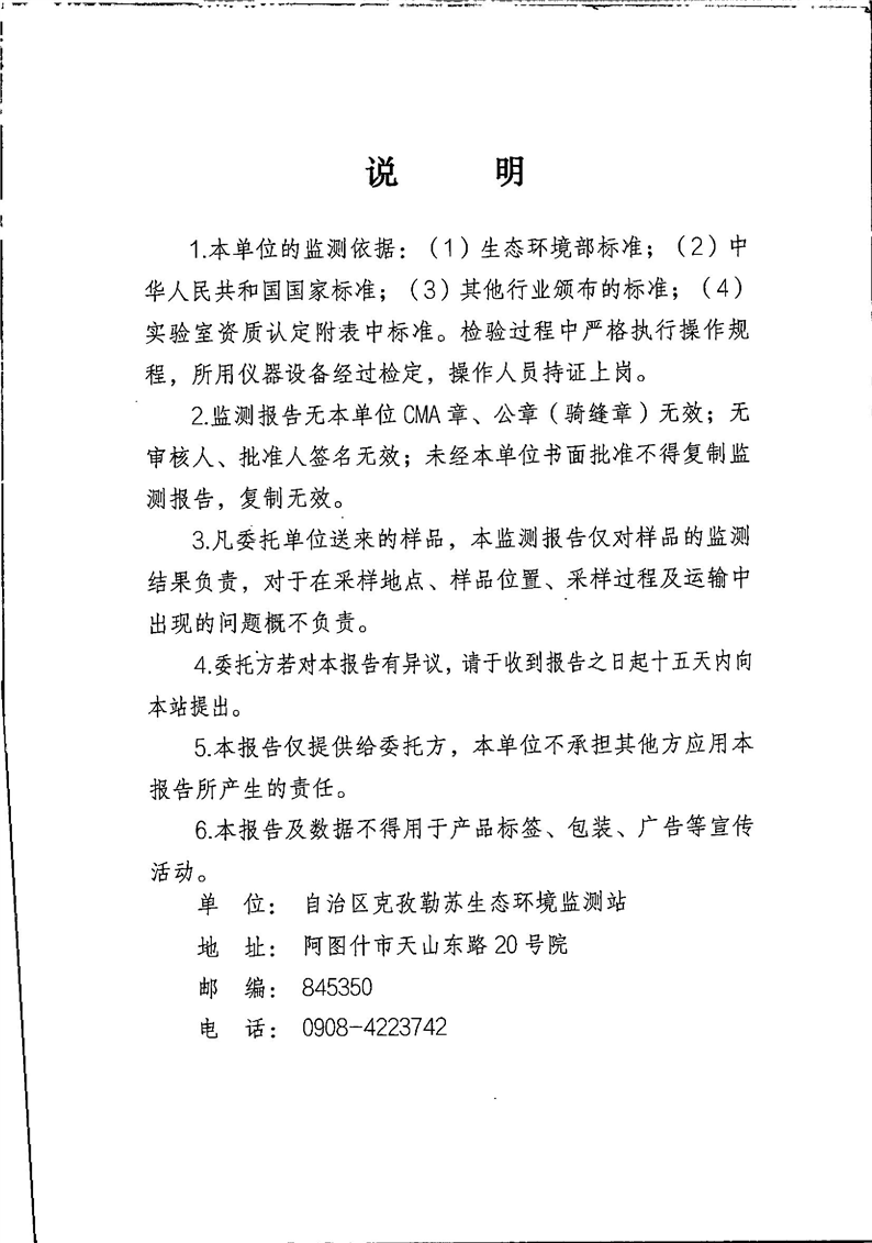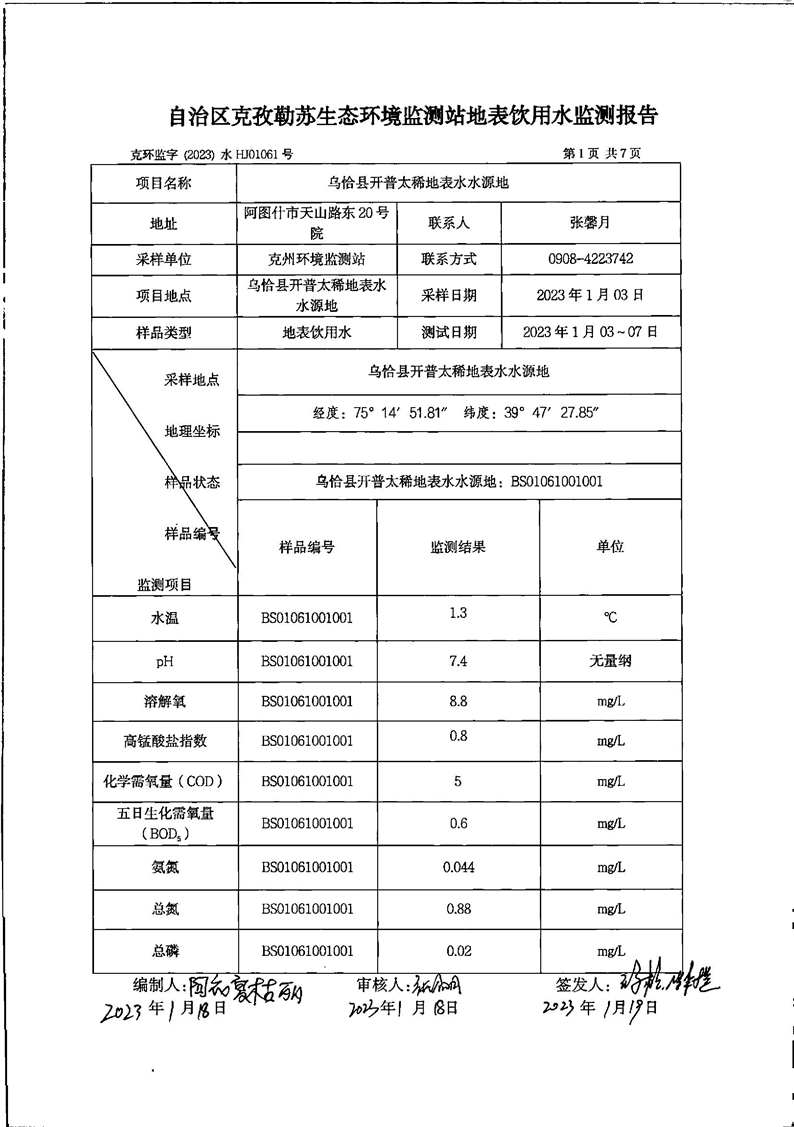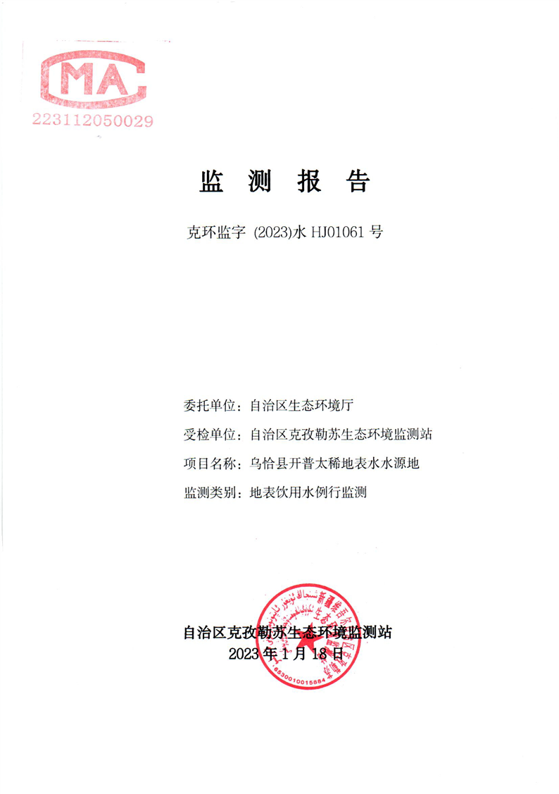 第一季度乌恰县开普太希水库地表水监测报告
