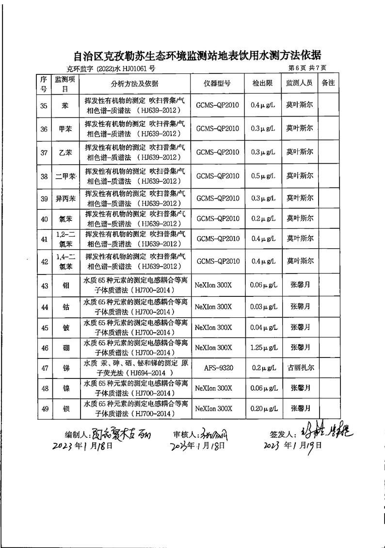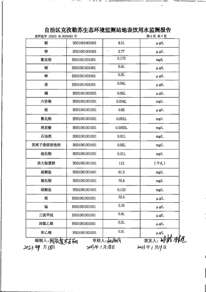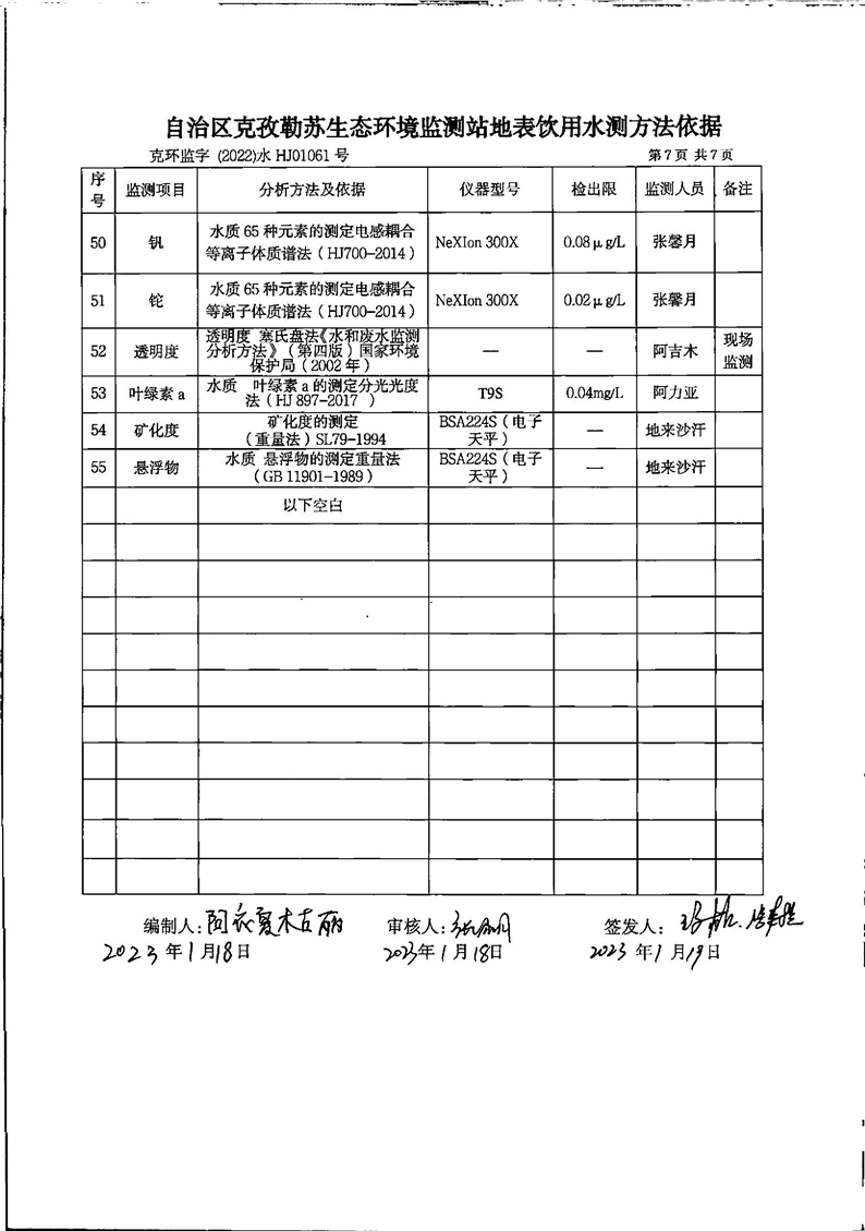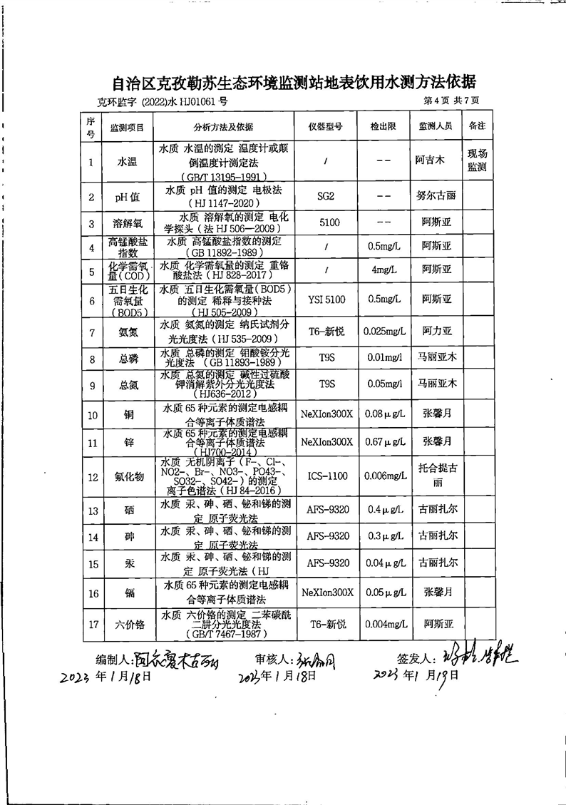 第一季度乌恰县开普太希水库地表水监测报告