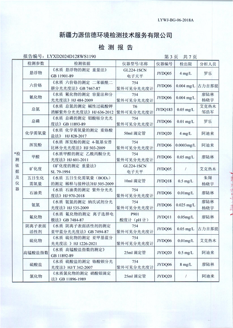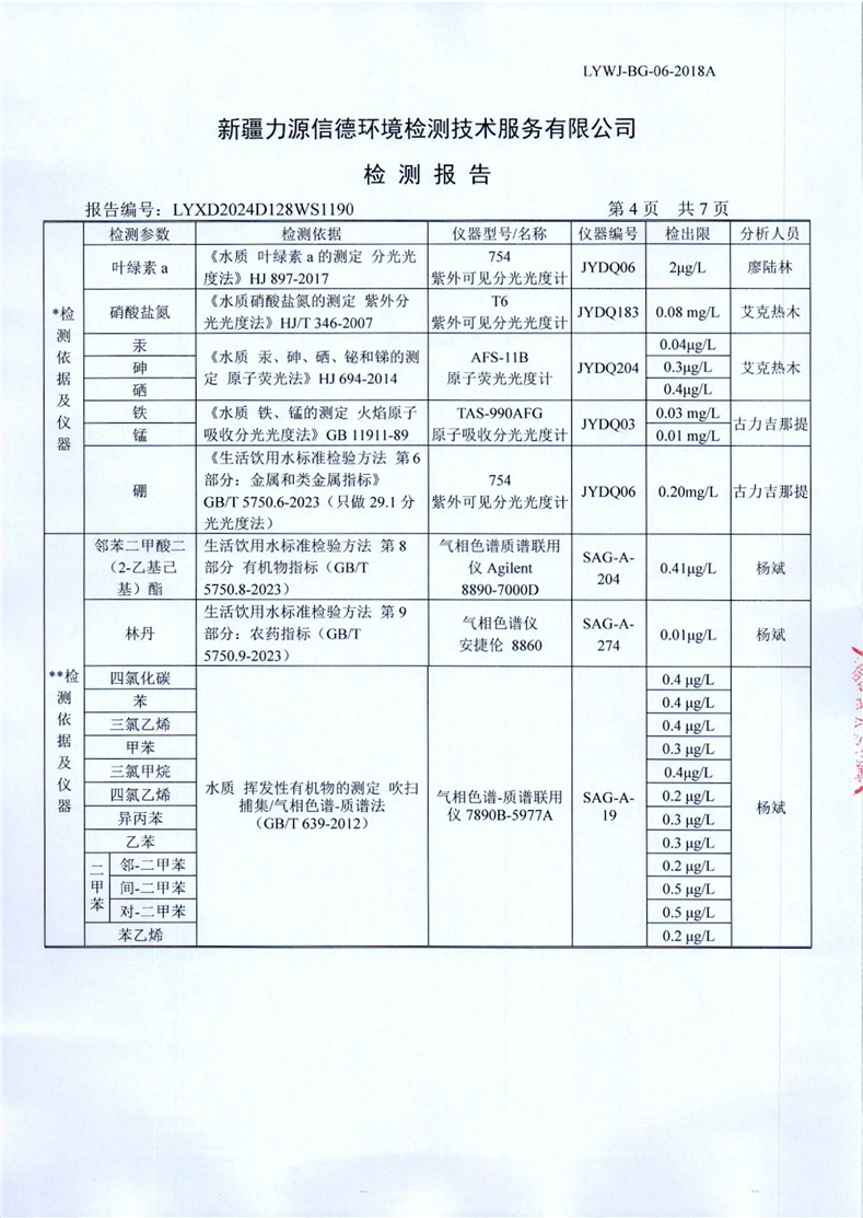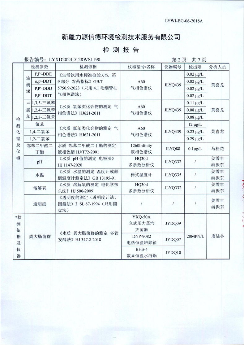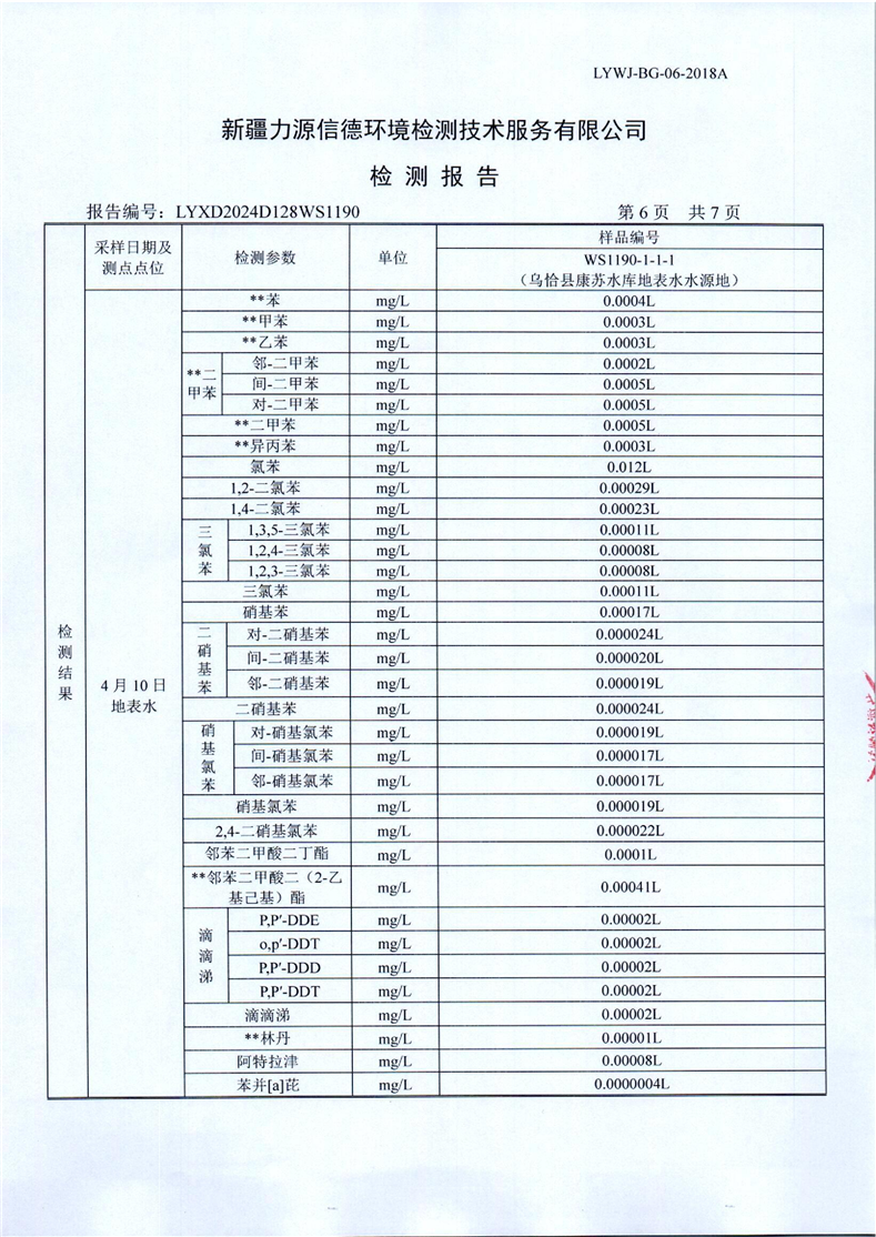 乌恰县康苏水库地表水水源地(2024年第二季度)检测报告