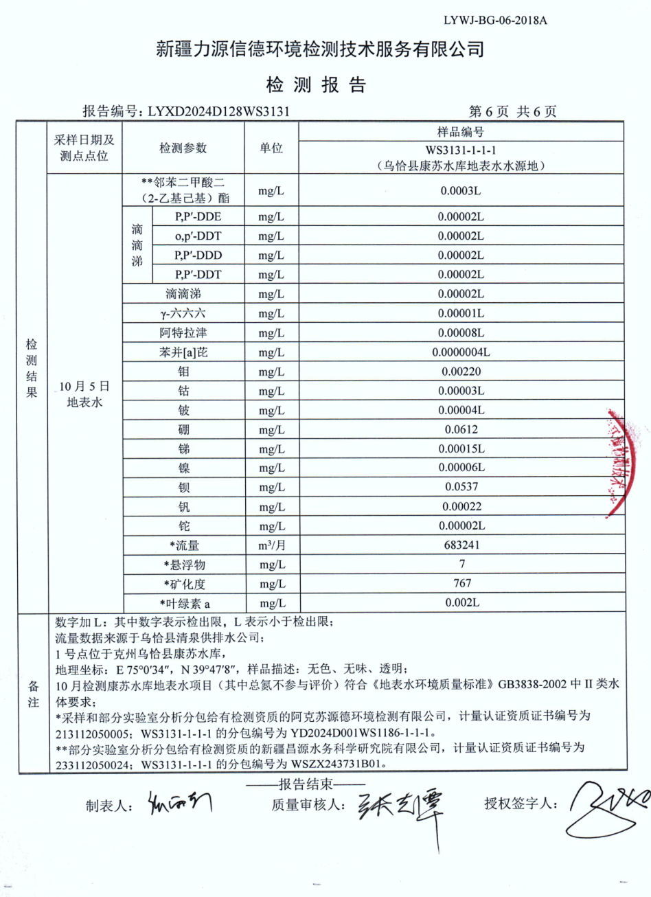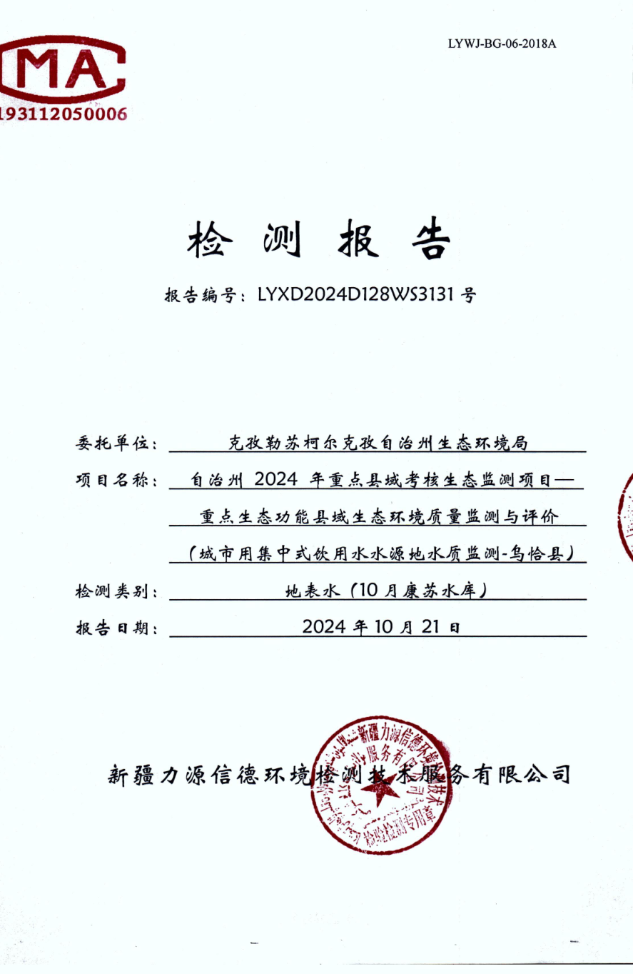 康苏水库饮用水源地2024年第四季度水质捡测报告