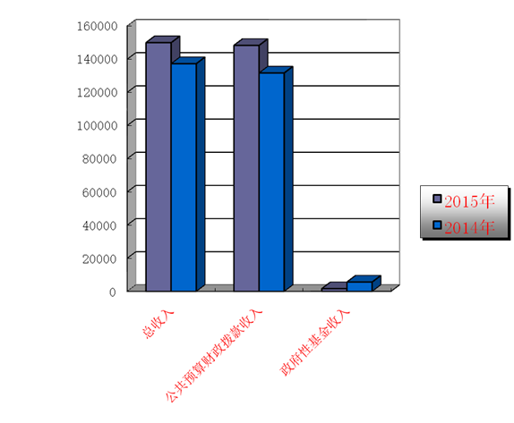 2015年财政拨款收入149948.7万元,同比上年137290.07万元增加12658.63万元,增长9.22%。 其中:一般公共预算财政拨款收入148300.45万元,比上年131682.01万元增长16618.44万元, 增长12.62%;政府性基金收入1648.25万元,比上年5608.06万元减少3959.81万元,同比减少70.61% 。