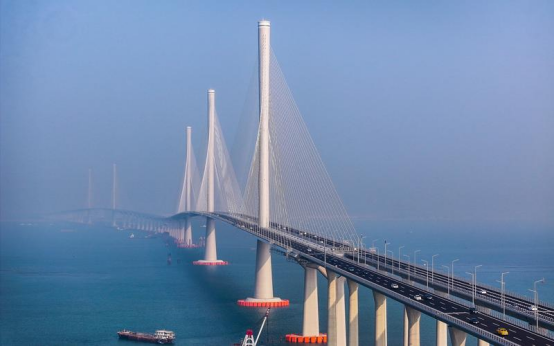 黄茅海跨海通道正式通车后,车辆行驶在黄茅海大桥上(2024年12月11日摄,无人机照片)。新华社记者 刘大伟 摄
