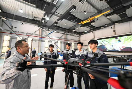 2024年11月12日,天津现代职业技术学院老师在无人机产教融合实践中心指导学生。新华社记者 赵子硕 摄