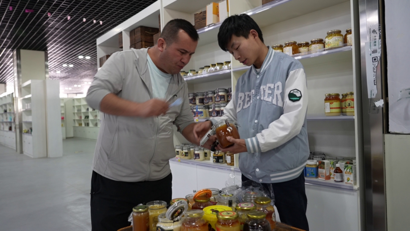 “这款蜂蜜是沙棘蜜,口感绵密沙软,不是很甜,很适合血糖、血脂、血压高的这类人群,还养胃。”为了让顾客有直接的感受,公司经理王明飞专门打开了一些商品,让顾客先尝后买,并为顾客详细介绍商品的口感、味道。