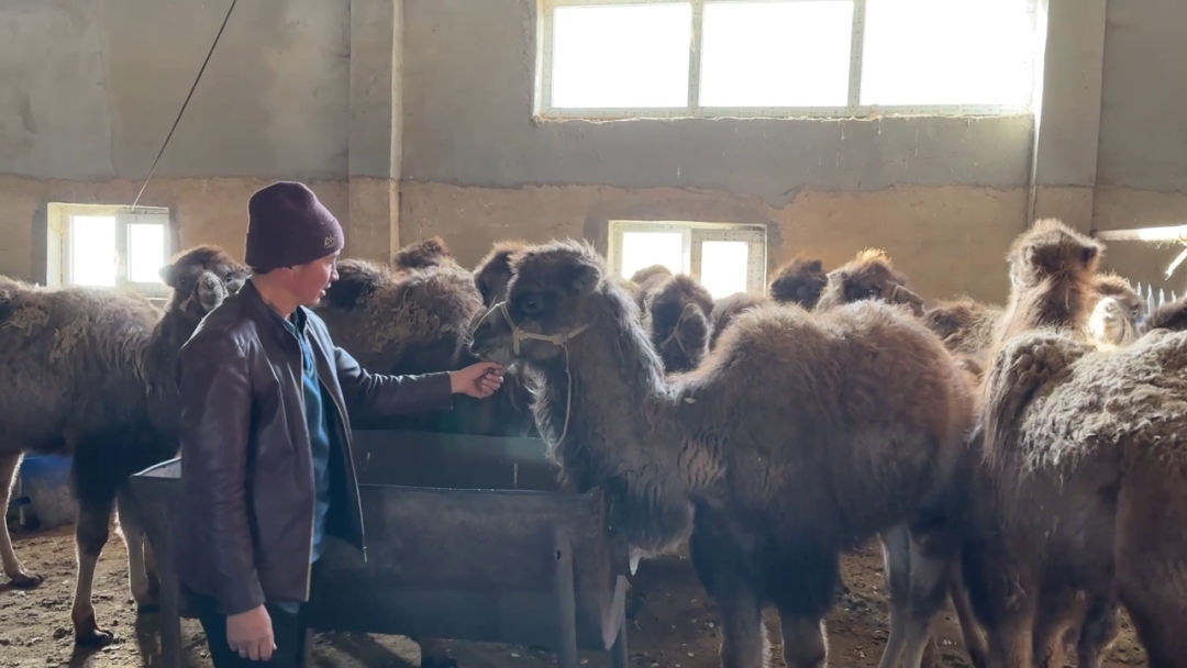 坎久干村村两委委员阿依米热·吐尔地巴依说:“在我们坎久干村,养殖业是主导产业,村里的两家骆驼养殖合作社,采用党支部+合作社+农户的经营方式,将骆驼集中科学饲养,提高了繁育率的同时,驼奶产量也提高了,下一步,我们将加大产业链升级,将驼奶,驼绒产品形成订单销售,提高合作社经济收入,带领农户增收。”