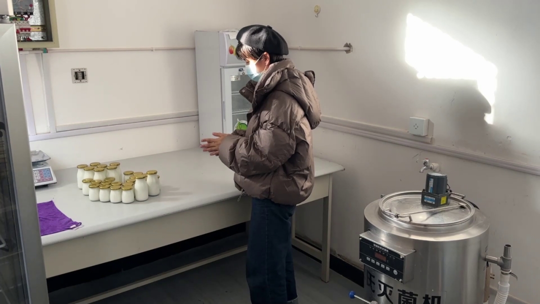 在乌恰县中吉商业街内,村“两委”开设了坎久干村农产品电商销售点,每天都会从合作社运送新鲜驼奶,在销售点进行装瓶、称重、灭菌,日均初加工驼奶20公斤。