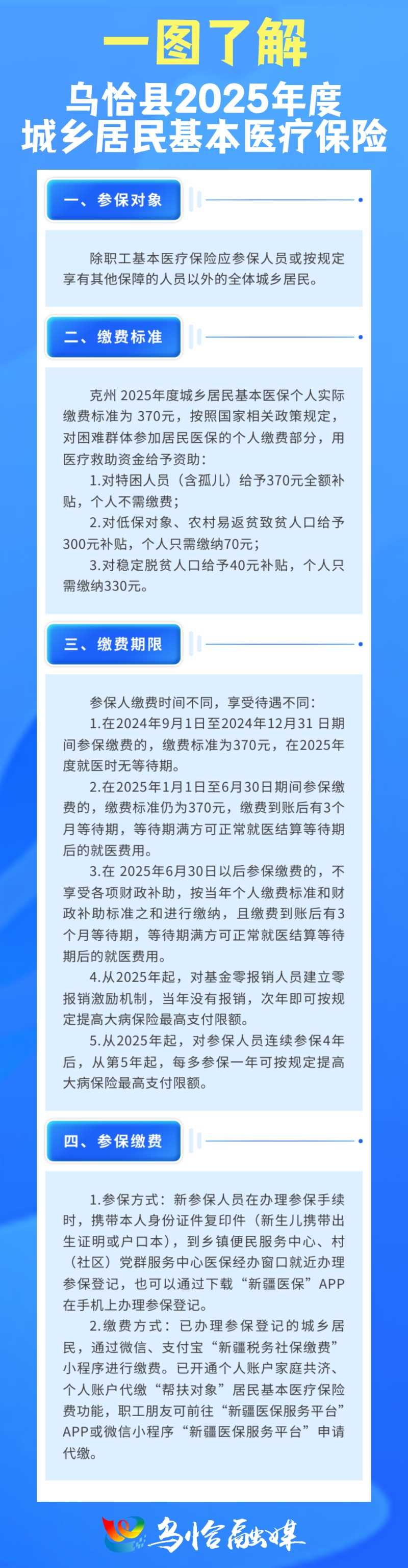乌恰县2025年度城乡居民基本医疗保险已于9月中旬全面启动,全县应参保人数42792人,截至目前,已参保20164人。居民医疗保险各项政策也成为广大居民普遍关心的问题。针对居民关心的问题,乌恰县医疗保障局进行了详细解答: