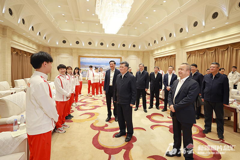 11月25日,自治区党委书记、兵团党委第一书记、第一政委马兴瑞,自治区党委副书记、自治区主席艾尔肯·吐尼亚孜在乌鲁木齐会见国家体育总局党组书记、局长高志丹和参加“决胜巴黎·绽放奥运——奥运冠军面对面”巡回宣讲活动的奥运健儿代表。石榴云/新疆日报记者崔志坚摄