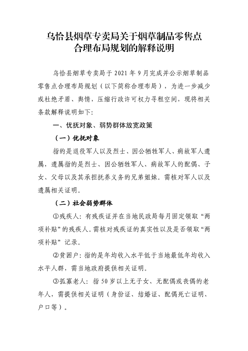 乌恰县烟草专卖局关于烟草制品零售点合理布局规划的解释说明