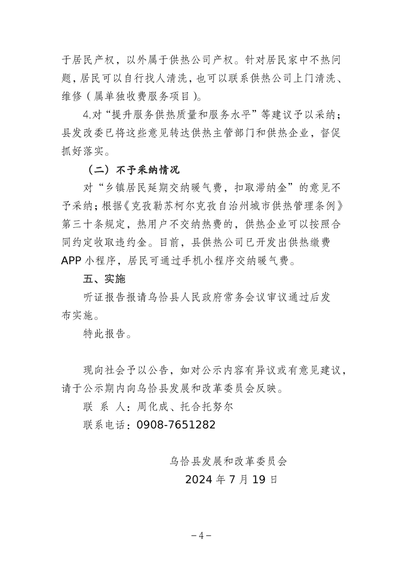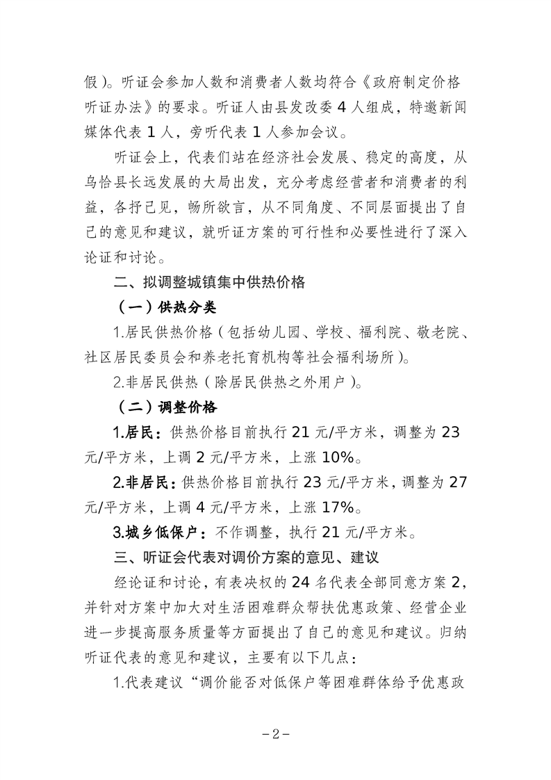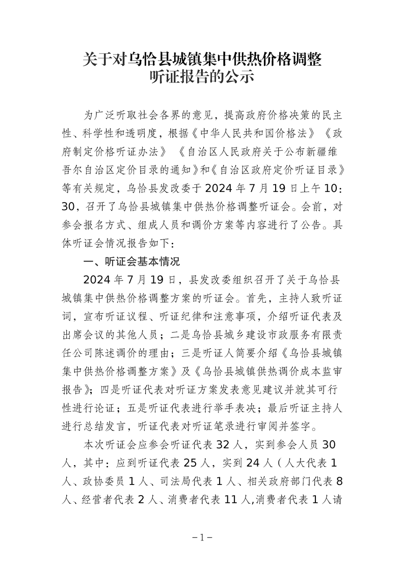 关于对乌恰县城镇集中供热价格调整听证报告的公示