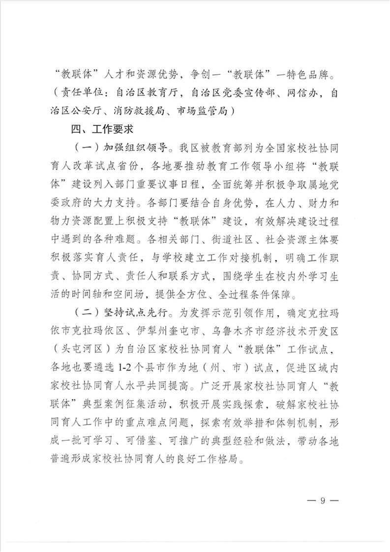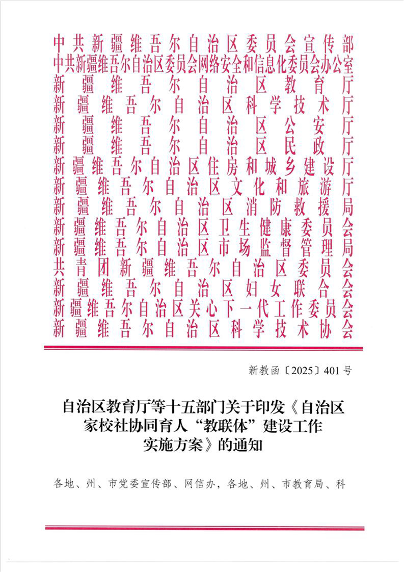 教育厅等十五部门关于印发《自治区家校社协同育人“教联体”建设工作实施方案》