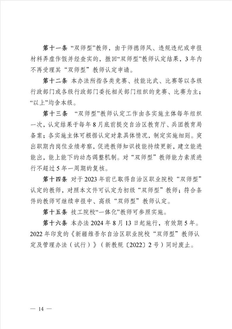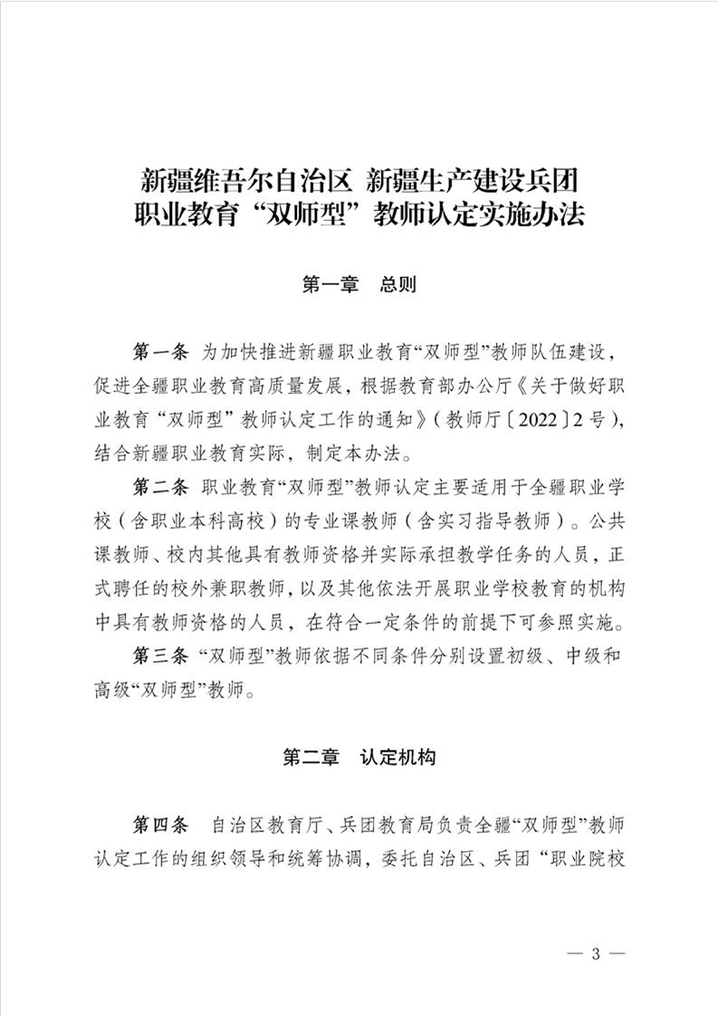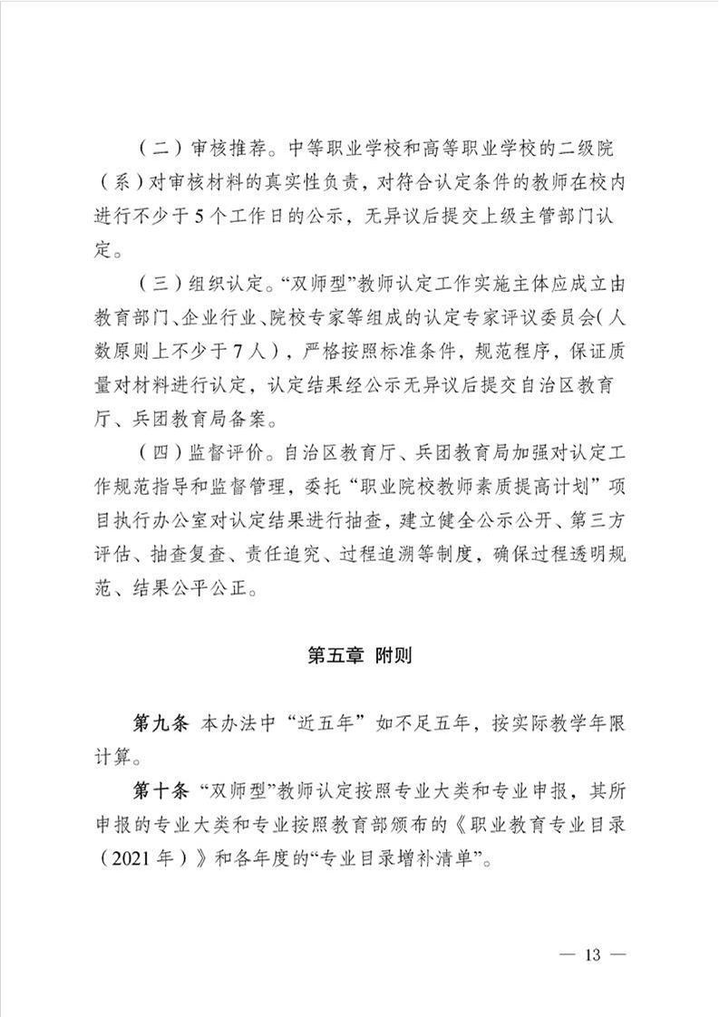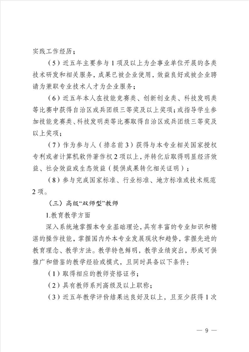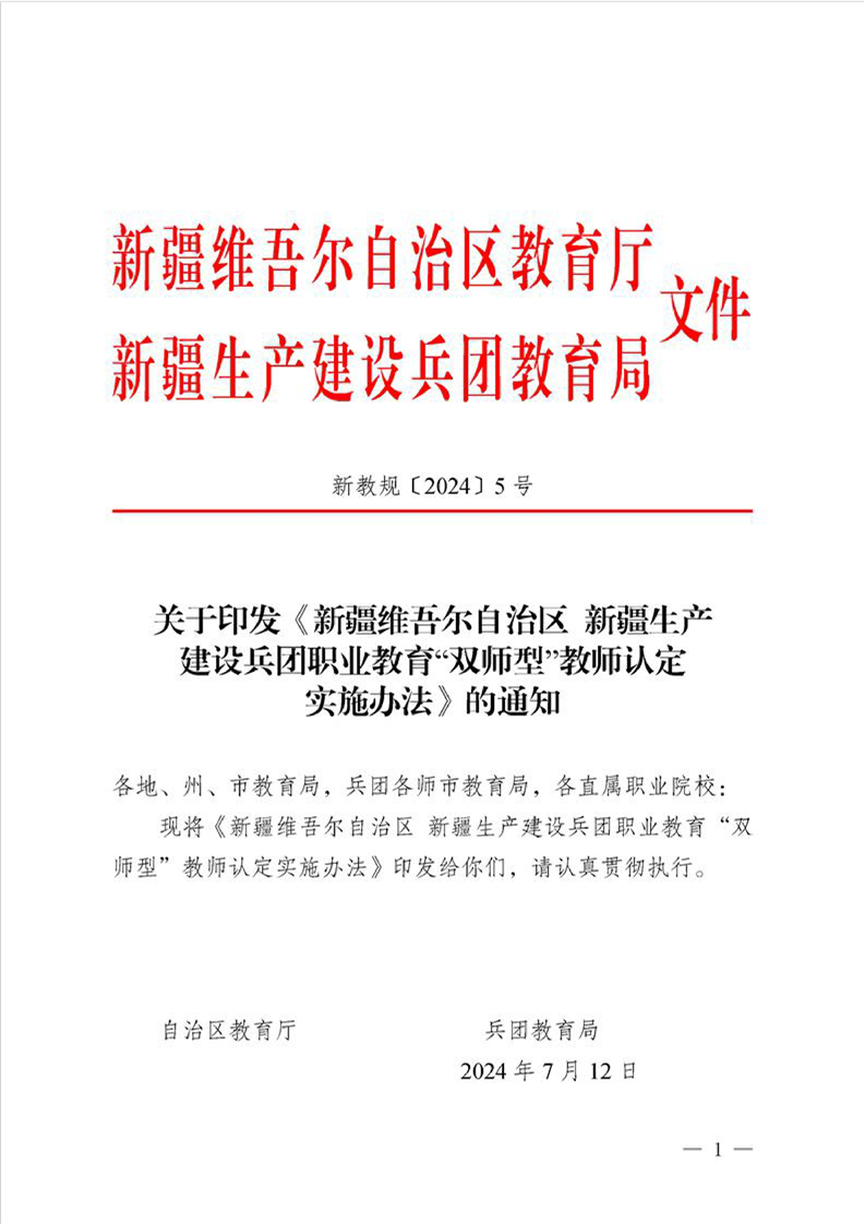 关于印发《新疆维吾尔自治区 新疆生产建设兵团职业教育“双师型”教师认定实施办法》的通知