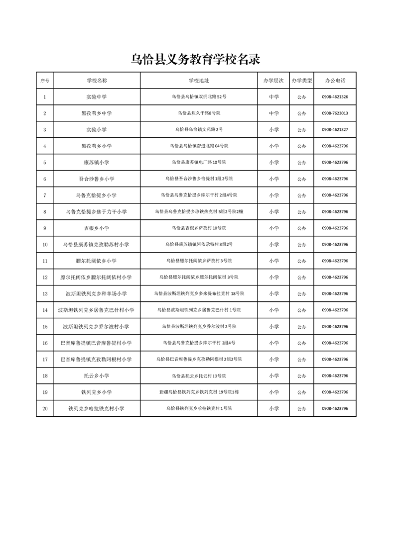 乌恰县义务教育学校名录