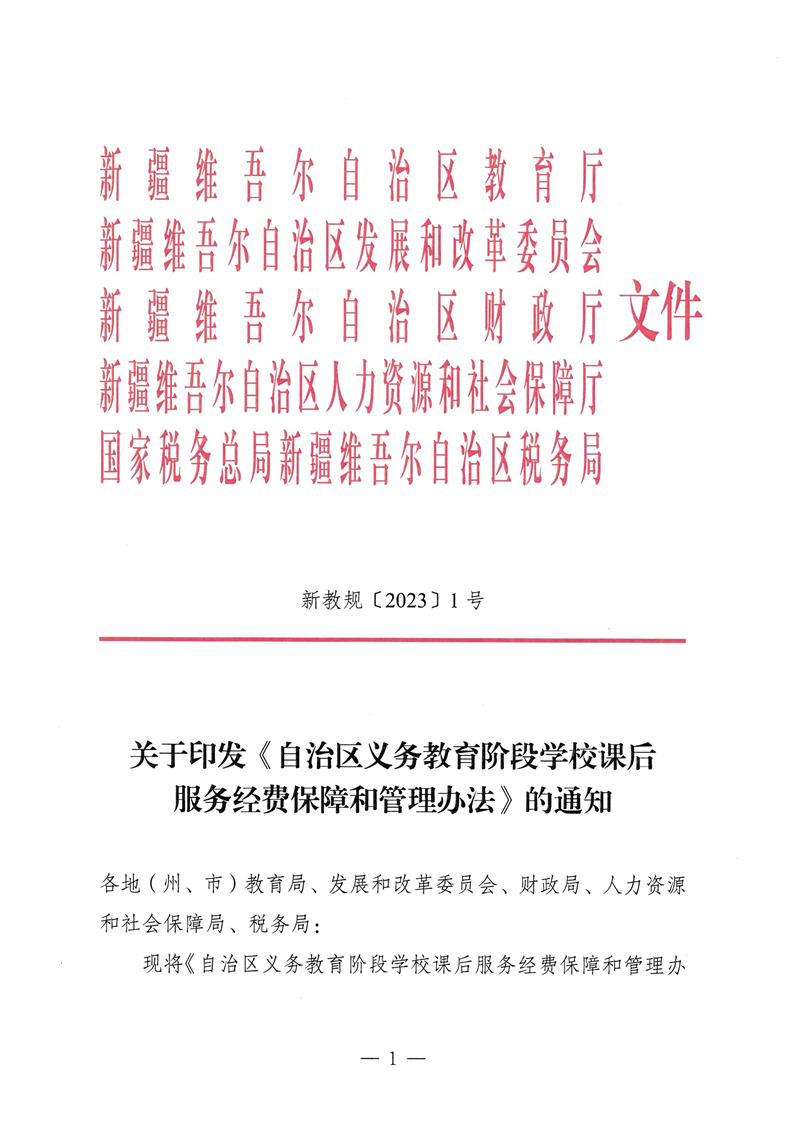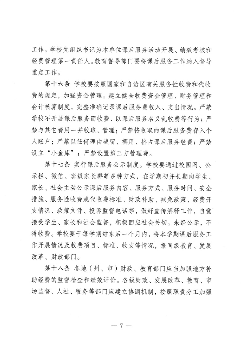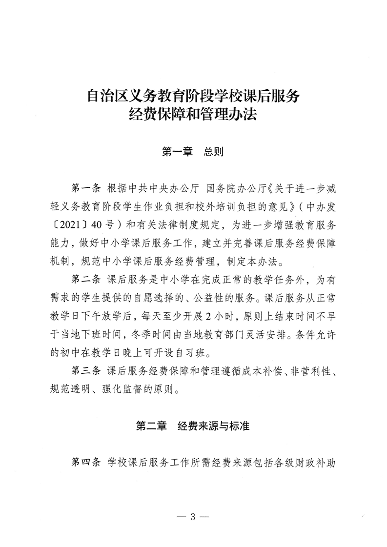 关于印发《自治区义务教育阶段学校课后服务经费保障和管理办法》的通知