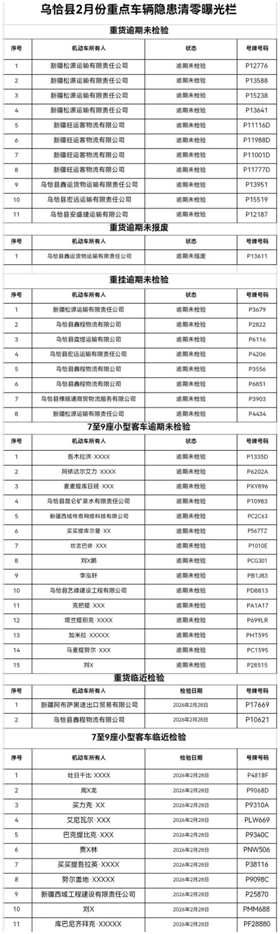 乌恰县2026年2月份重点车辆隐患清零曝光栏