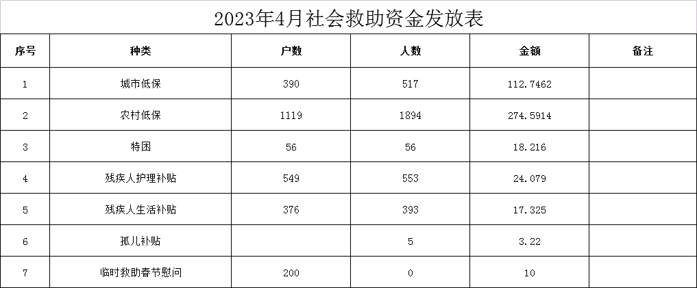 2023年4月社会救助资金发放表
