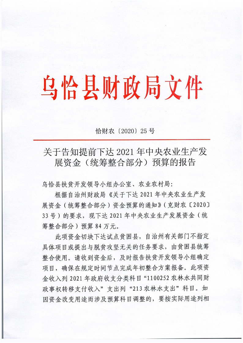 | 文 号 | 恰财农〔2020〕25号 | 有 效 性 | |