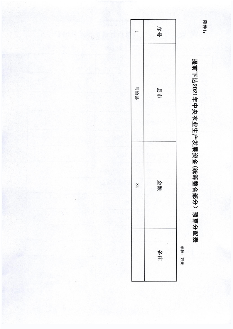 关于告知提前下达2021年中央农业生产发展资金(统筹整合部分)预算的报告