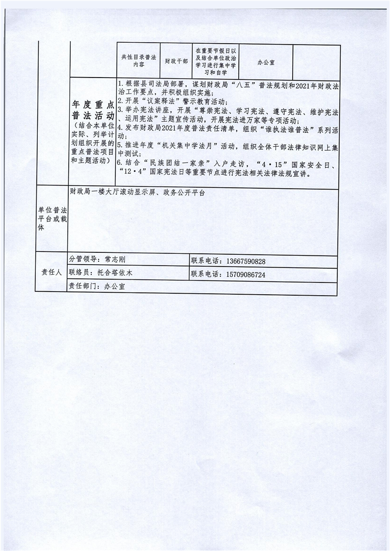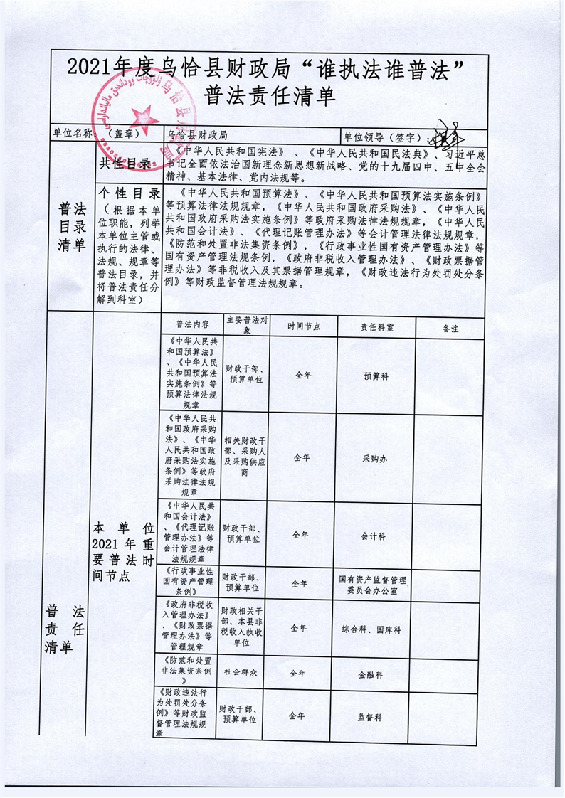 2021年度乌恰县财政局谁普法谁执法责任清单