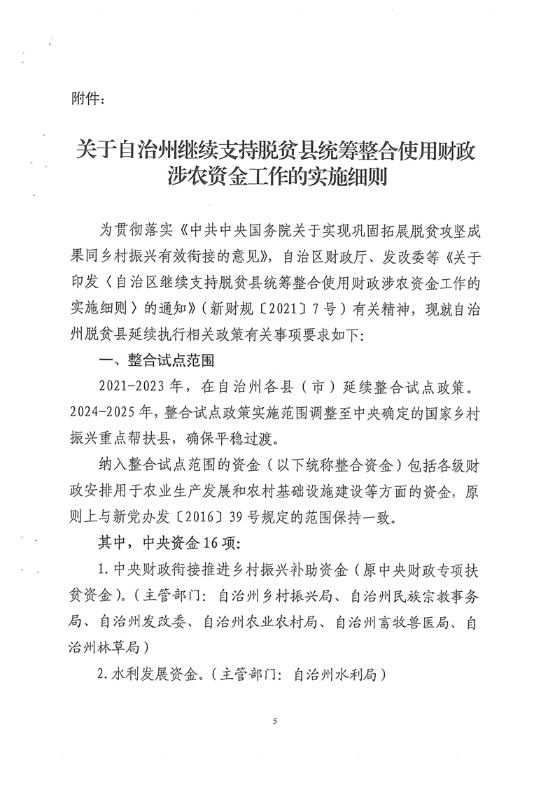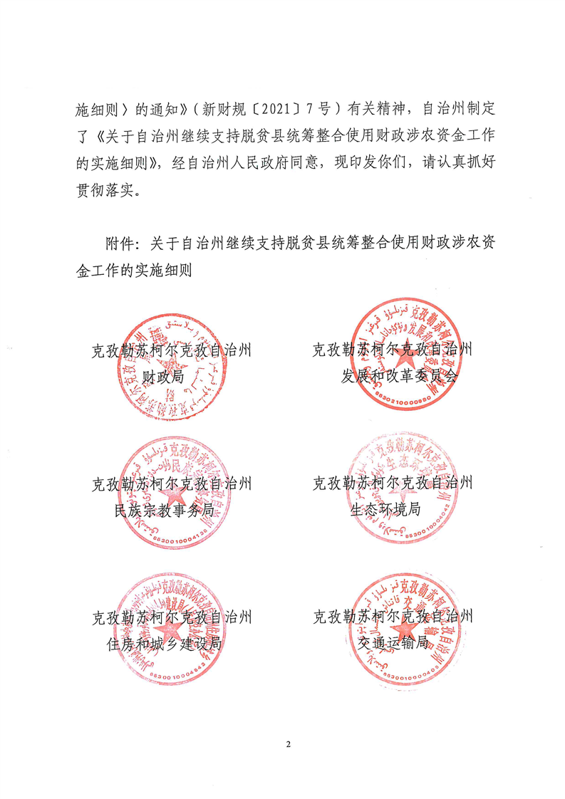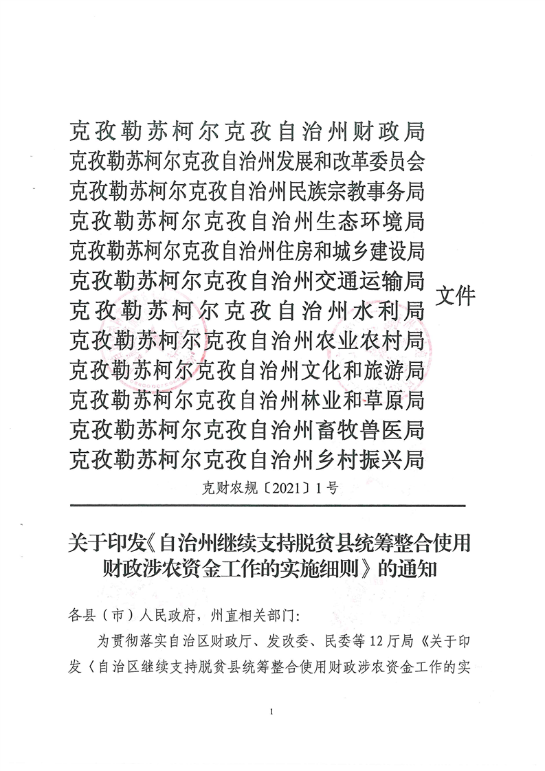 克财农规(2021)1号关于印发《自治州继续支持脱贫县统筹整合使用财政涉农资金工作的实施细则》的通知