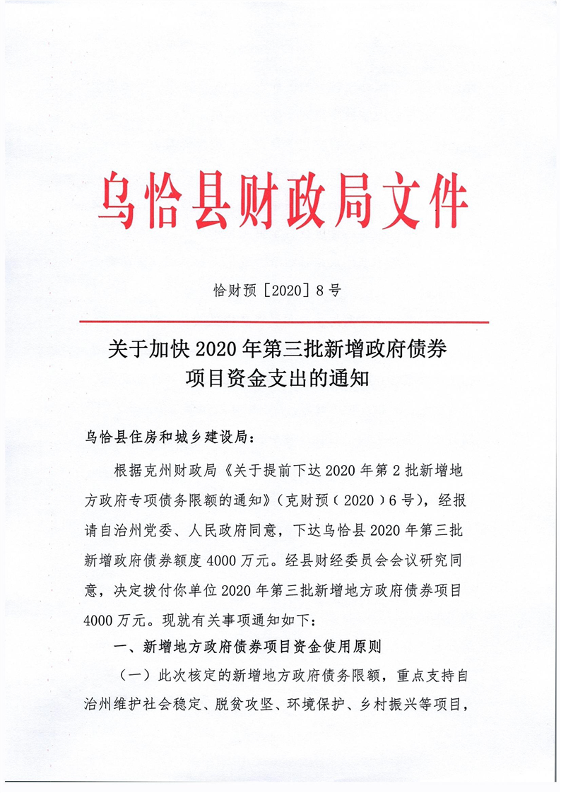 关于加快2020年第三批新增政府债券项目资金支出的通知