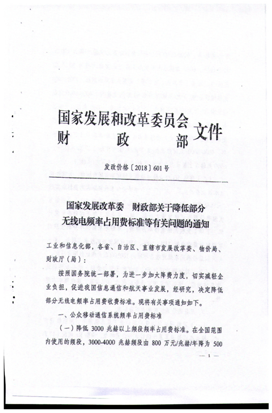 国家发改委财政部关于降低部分无线电频率占用费用的标准等有关问题的通知