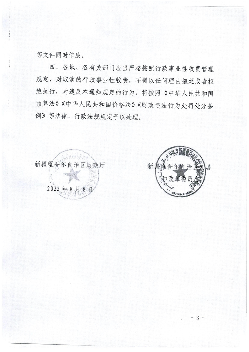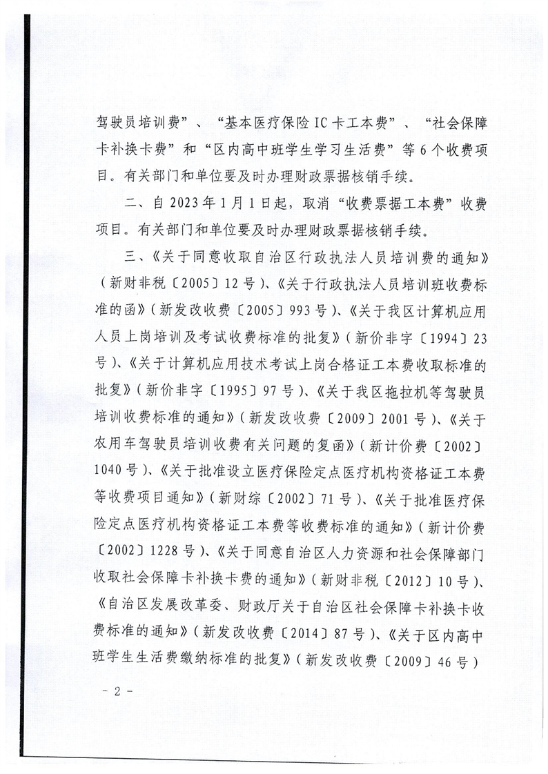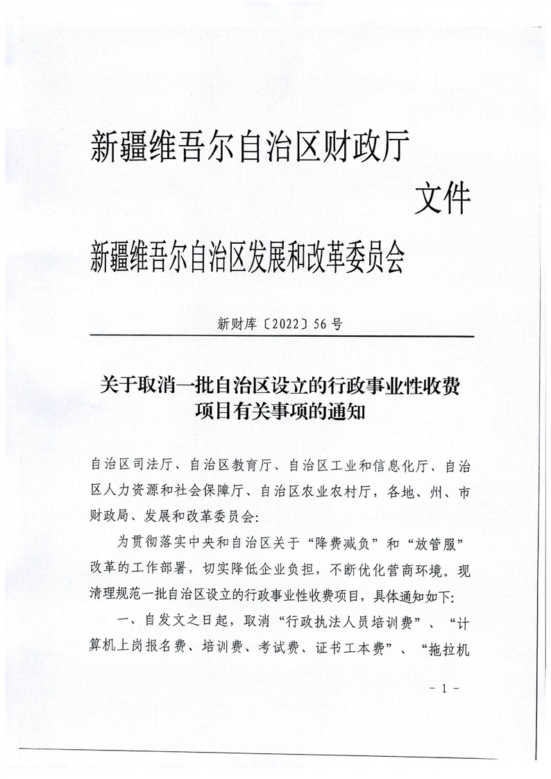 关于取消一批自治区设立的行政事业性收费项目的通知