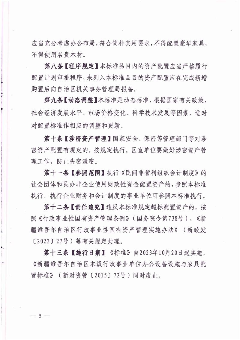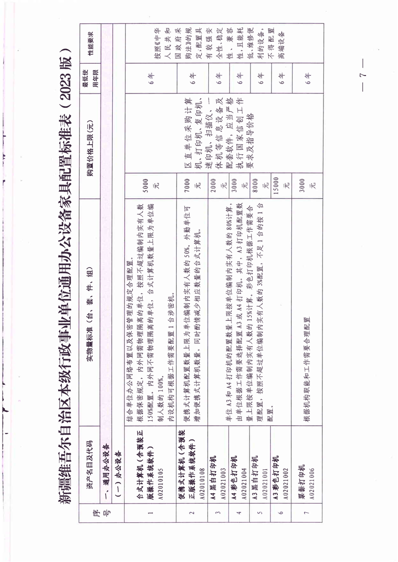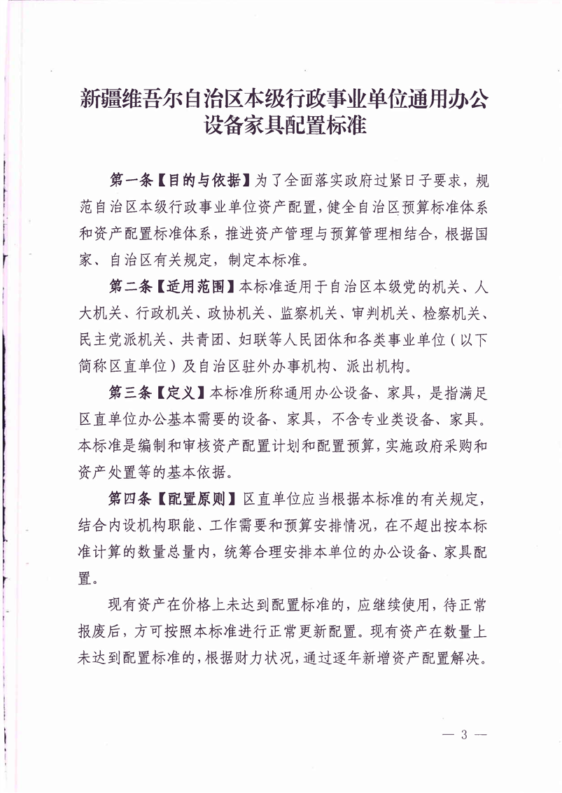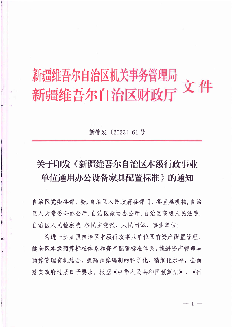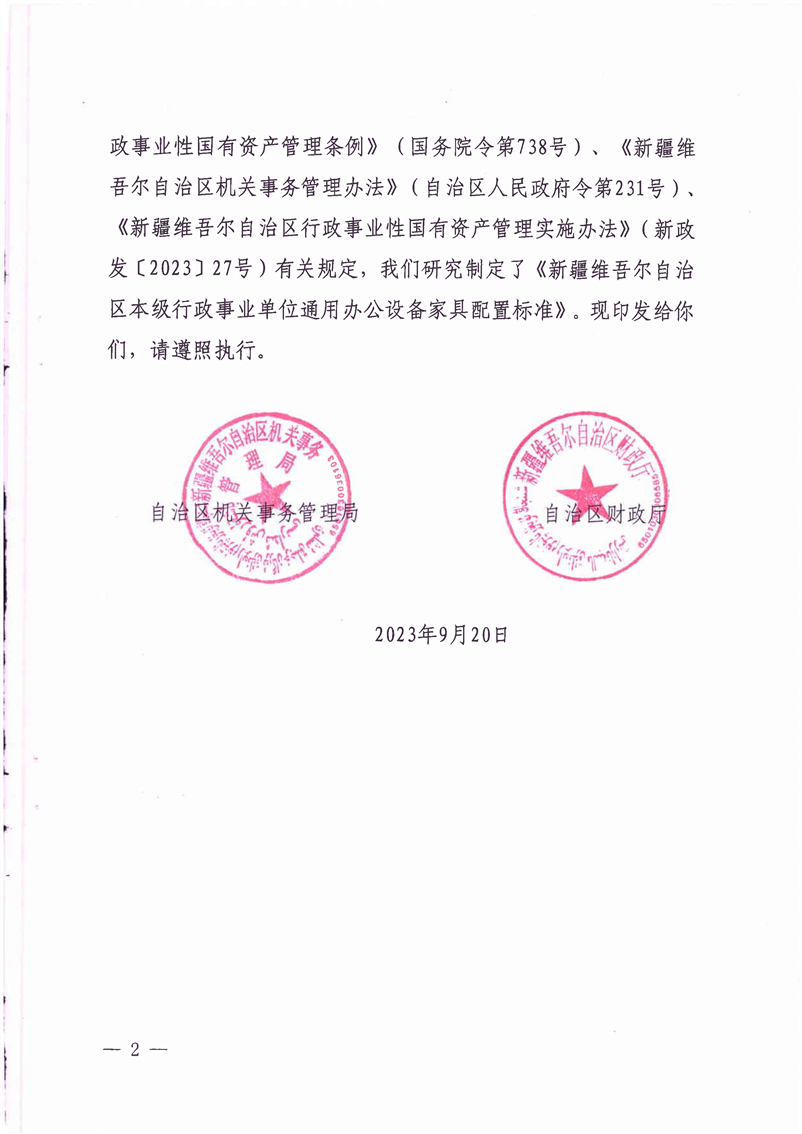 关于印发《新疆维吾尔自治区本级行政事业单位通用办公设备家具配置》的通知