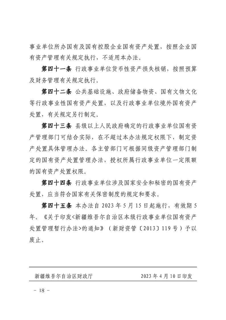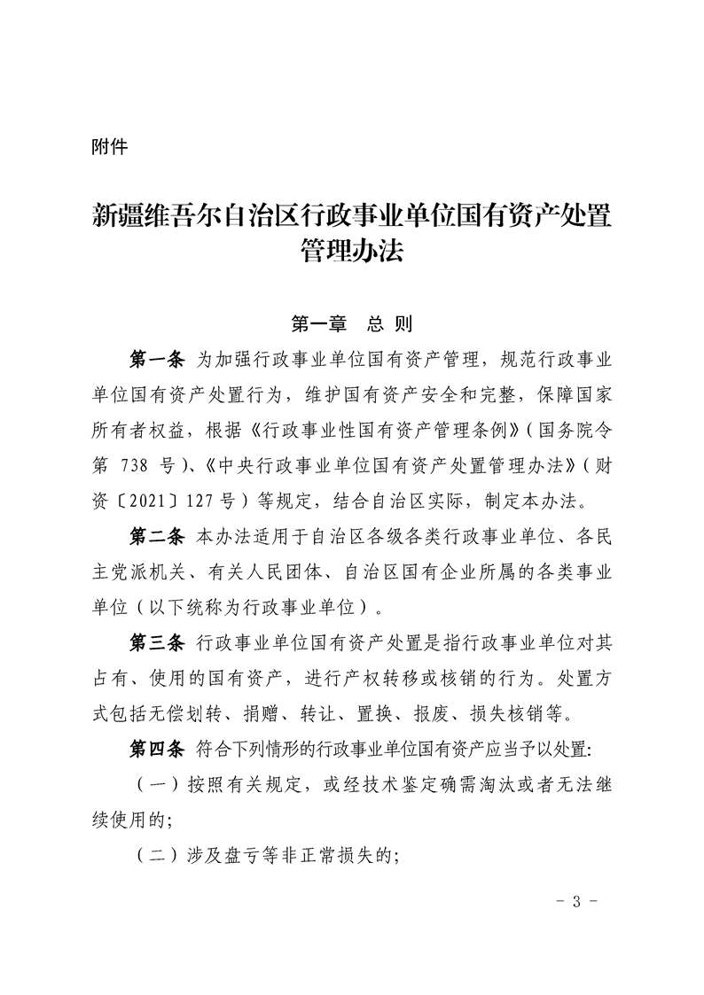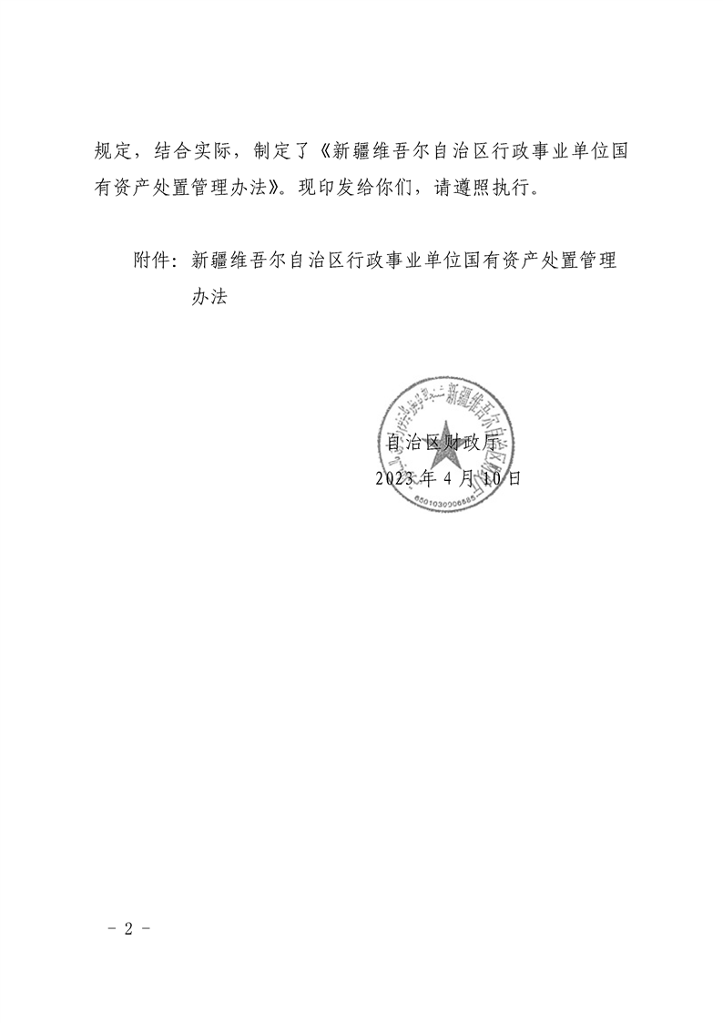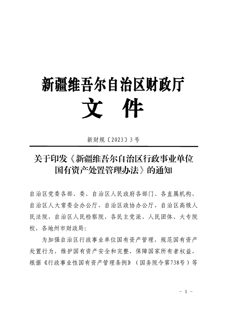 关于印发《新疆维吾尔自治区行政事业单位国有资产处置管理办法》的通知